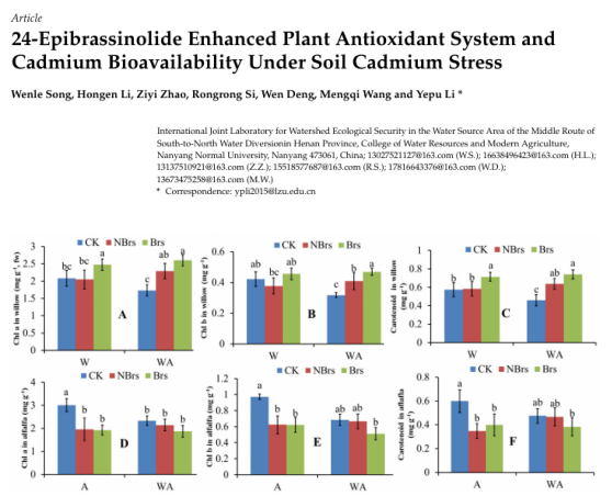 本网讯(通讯员 宋文乐 邓敏杰 张君)近日,新葡萄8883官网AMG水资源与现代农业学院环境污染控制与风险防控团队在期刊《Plants》(JCR一区)上发表了题为“24-Epibrassinolide Enhanced Plant Antioxidant System and Cadmium Bioavailability Under Soil Cadmium Stress”的科研论文。该论文由新葡萄官网环境科学与工程专业2022级本科生宋文乐担任第一作者,李业朴博士担任通讯作者,新葡萄8883官网AMG南水北调学院暨水资源与现代农业学院为独立完成单位。