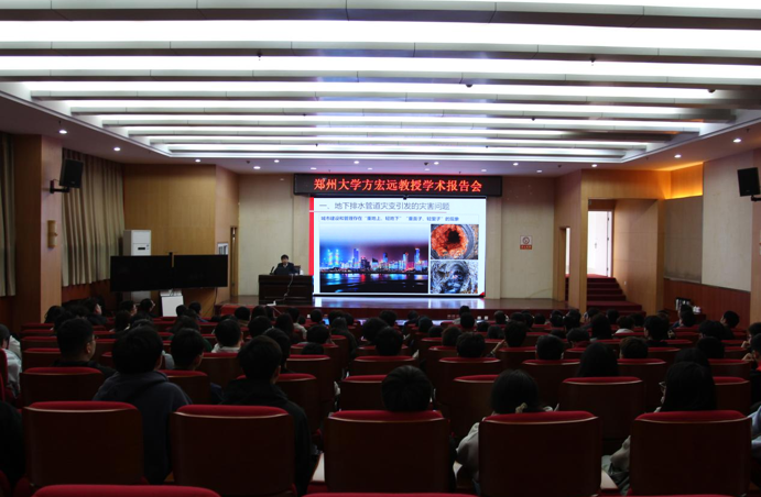 本网讯(鲁菁 张君/文 孙熙楠/图)3月23日,土木建筑工程学院在图书馆一楼报告厅成功举办了主题为“城镇地下排水管道智能诊断与非开挖修复”的学术报告会。本次报告会特邀郑州大学方宏远教授担任主讲嘉宾,学院院长徐俊主持,学院师生及相关领域研究人员近200人参加了此次报告。