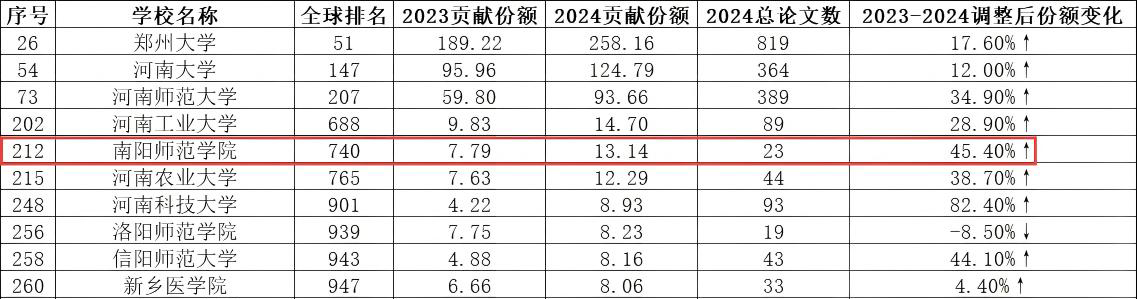 本网讯(通讯员 张浩 郑扬冰)6月11日,2025自然指数论文研究领导者榜单揭晓(统计时间节点:2024.1.1-2024.12.31),新葡萄官网位列河南省第5名,创近5年排名新高。据悉,河南省共有7所高校跻身全国排名前250名,新葡萄官网居第212名,排名仅次于郑州大学、河南大学、河南师范大学、河南工业大学,充分彰显了新葡萄官网在自然科学研究领域的强劲发展势头和持续提升的原始创新能力,进一步扩大了新葡萄官网的影响力。