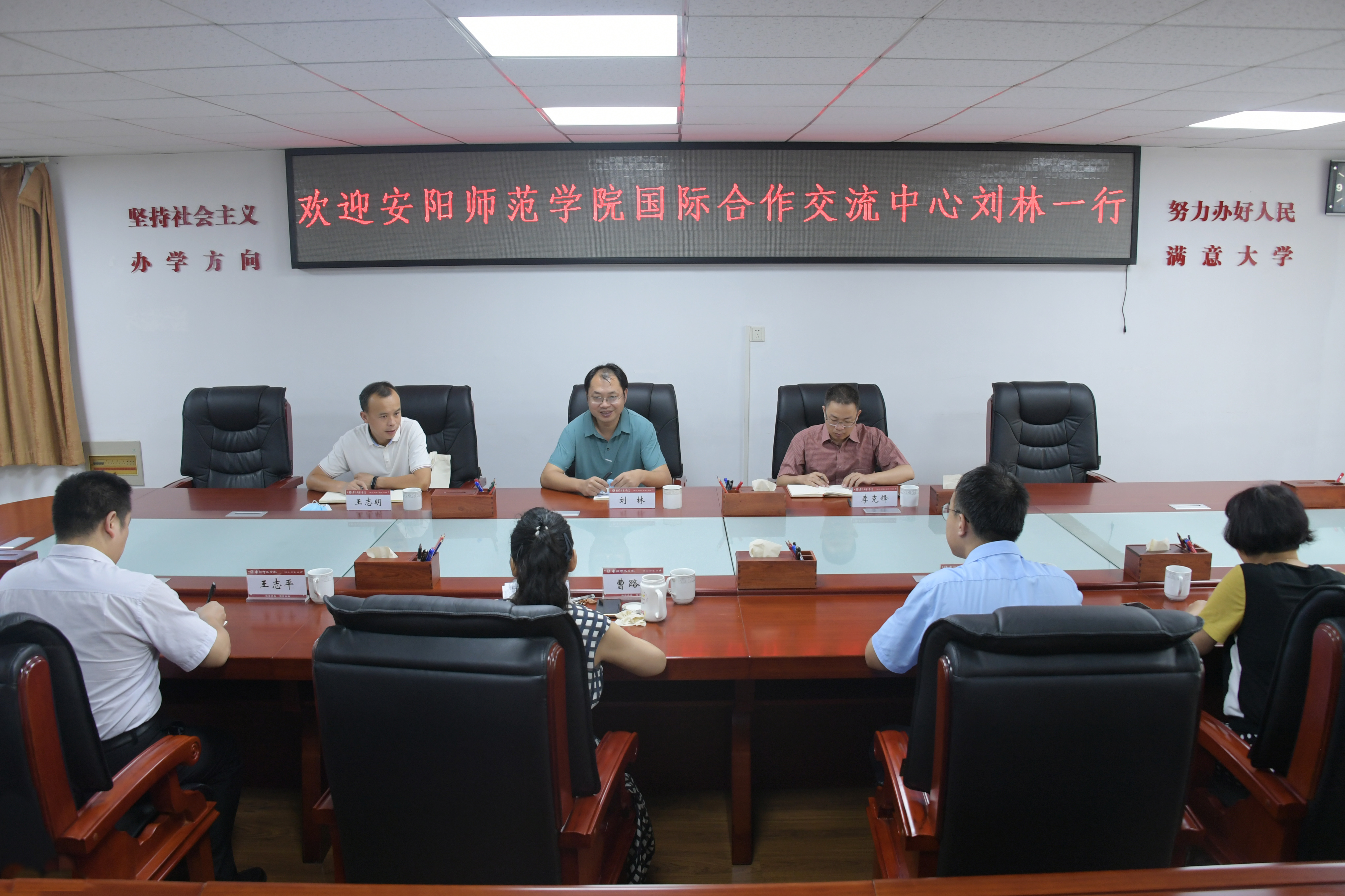 本网讯(丁东粮/文 王基仁/图)8月4日上午,安阳师范学院国际合作交流中心主任刘林一行来新葡萄官网考察交流,并在办公大楼二楼会议室举行座谈会。