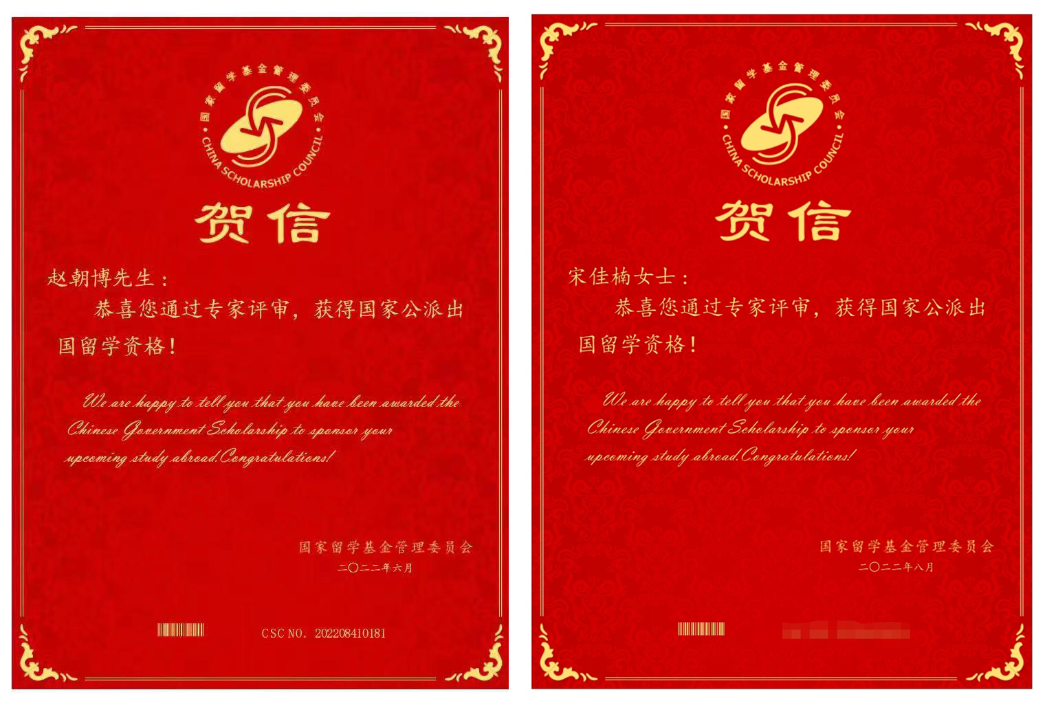 本网讯(通讯员 徐玲珍)近日,国家留学基金委公布2022年度公派出国留学项目(学生)录取结果,新葡萄官网2名学生通过评审获得公派留学资格将于近期赴国外学习。