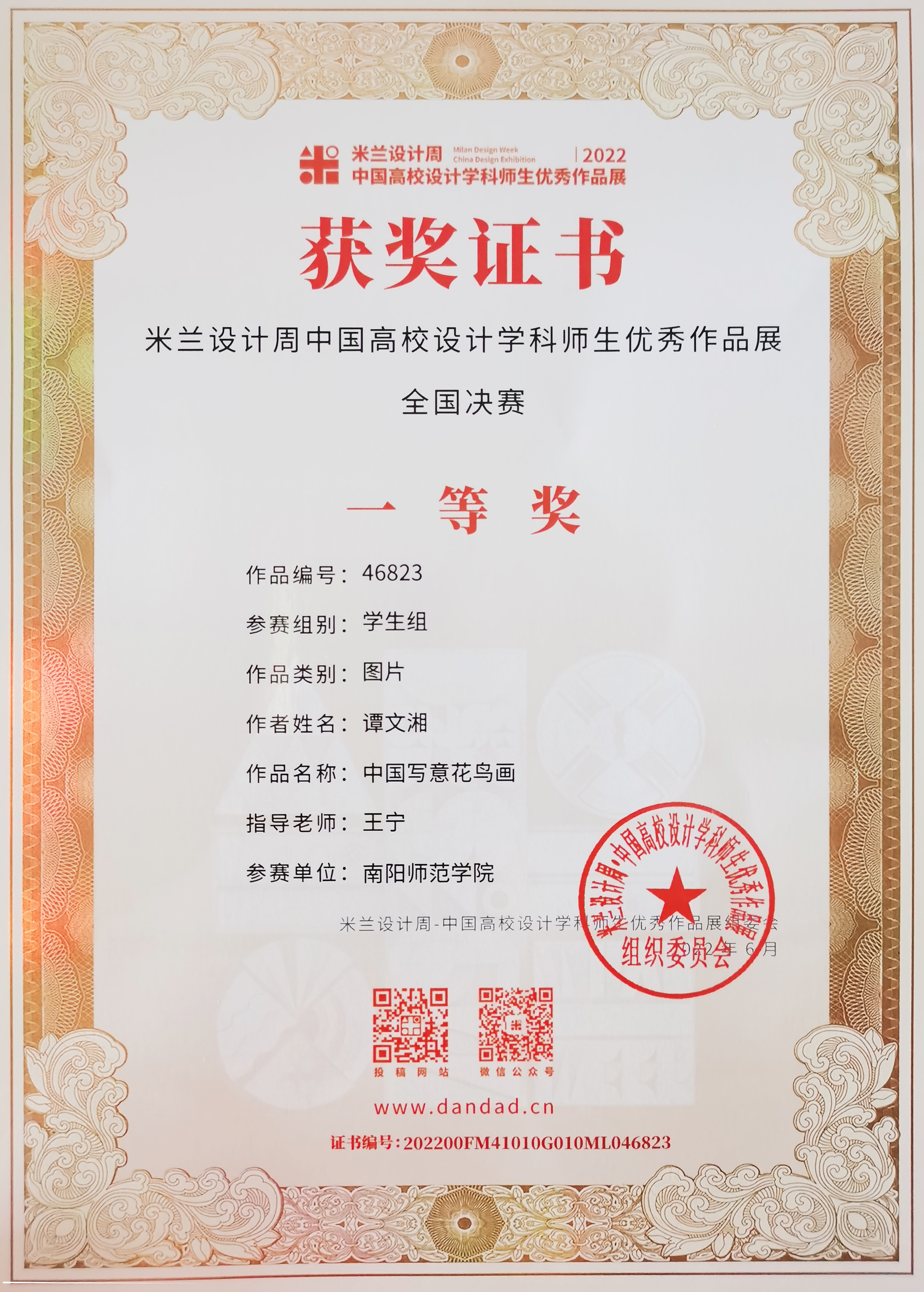 本网讯(通讯员 张聪)近日,2022年第六届米兰设计周——中国高校设计学科师生优秀作品展国赛获奖名单公布,新葡萄官网美术与艺术设计学院师生分别获得国家级一等奖1项,二等奖1项。此前在省级分赛区比赛中,新葡萄官网共获得省级一等奖4项、二等奖3项目,三等奖5项。