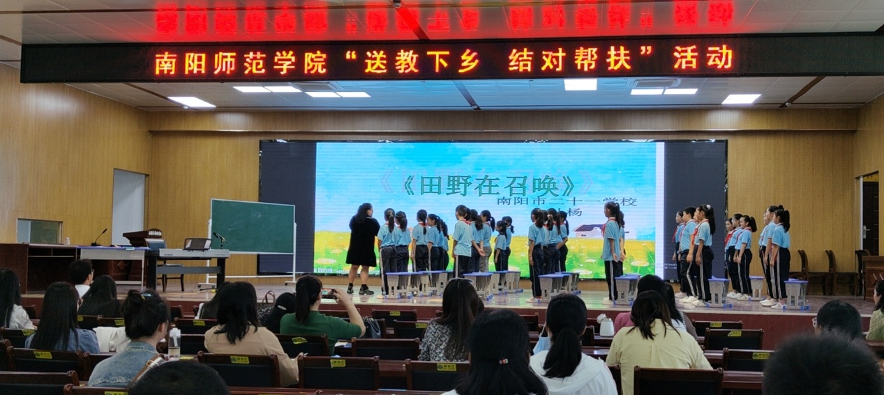 本网讯 9月27-30日,教师发展中心主任王燕等带领南阳市第十七小学陈素珍老师、南阳市第二十一小学杜杨老师、南阳市第一完全学校孟红云老师等赴社旗县开展小学体育、小学音乐、小学美术示范课“送教下乡 结对帮扶”活动。社旗县教体局相关负责同志、社旗县全体小学体育教师、全体小学音乐教师、全体小学美术参加培训。