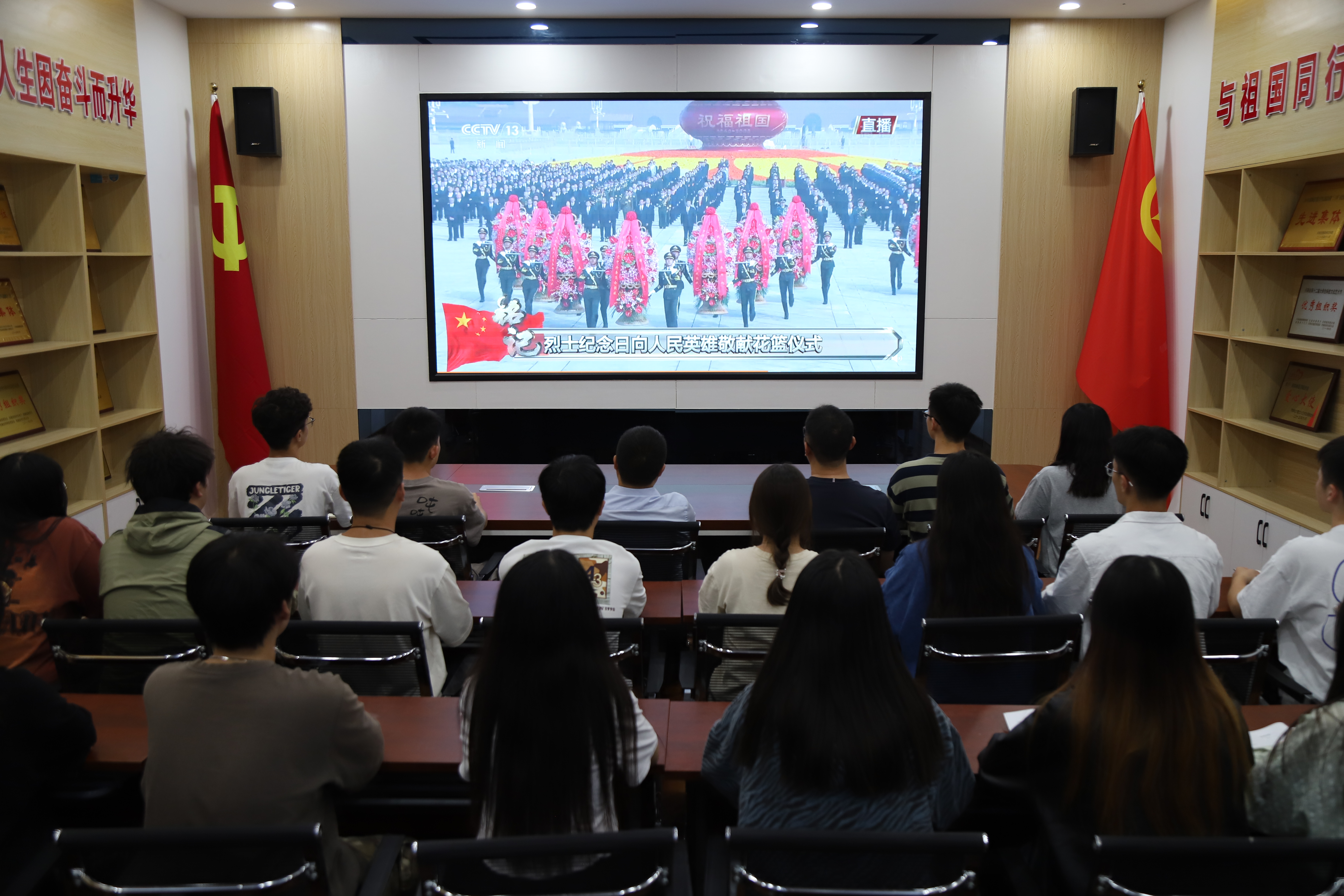 本网讯(李珂 陈秀凤/文 高梓琳/图)9月30日是我国第九个烈士纪念日。烈士纪念日向人民英雄敬献花篮仪式在北京天安门广场隆重举行。校团委组织学生干部在中区学生服务中心208会议室集中观看视频直播。