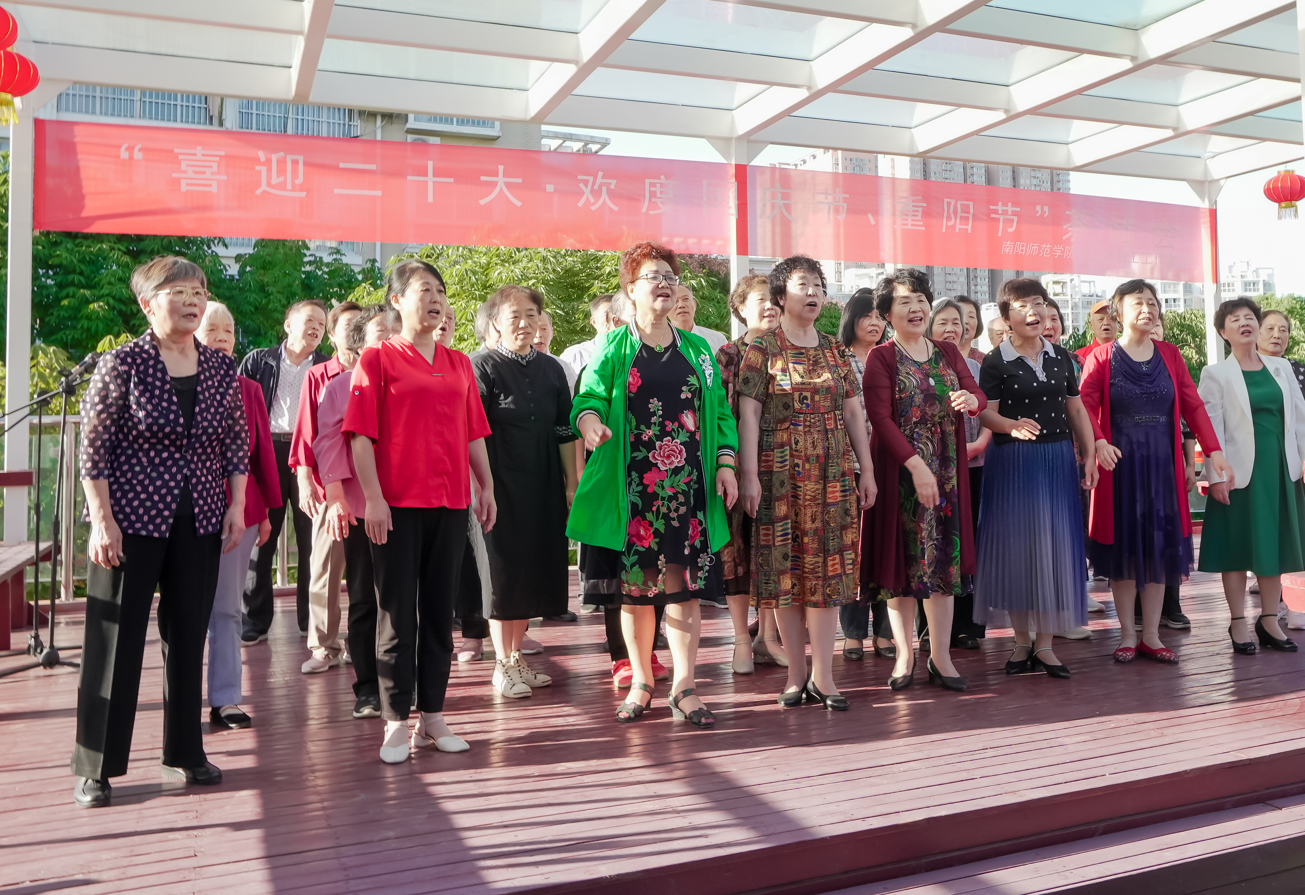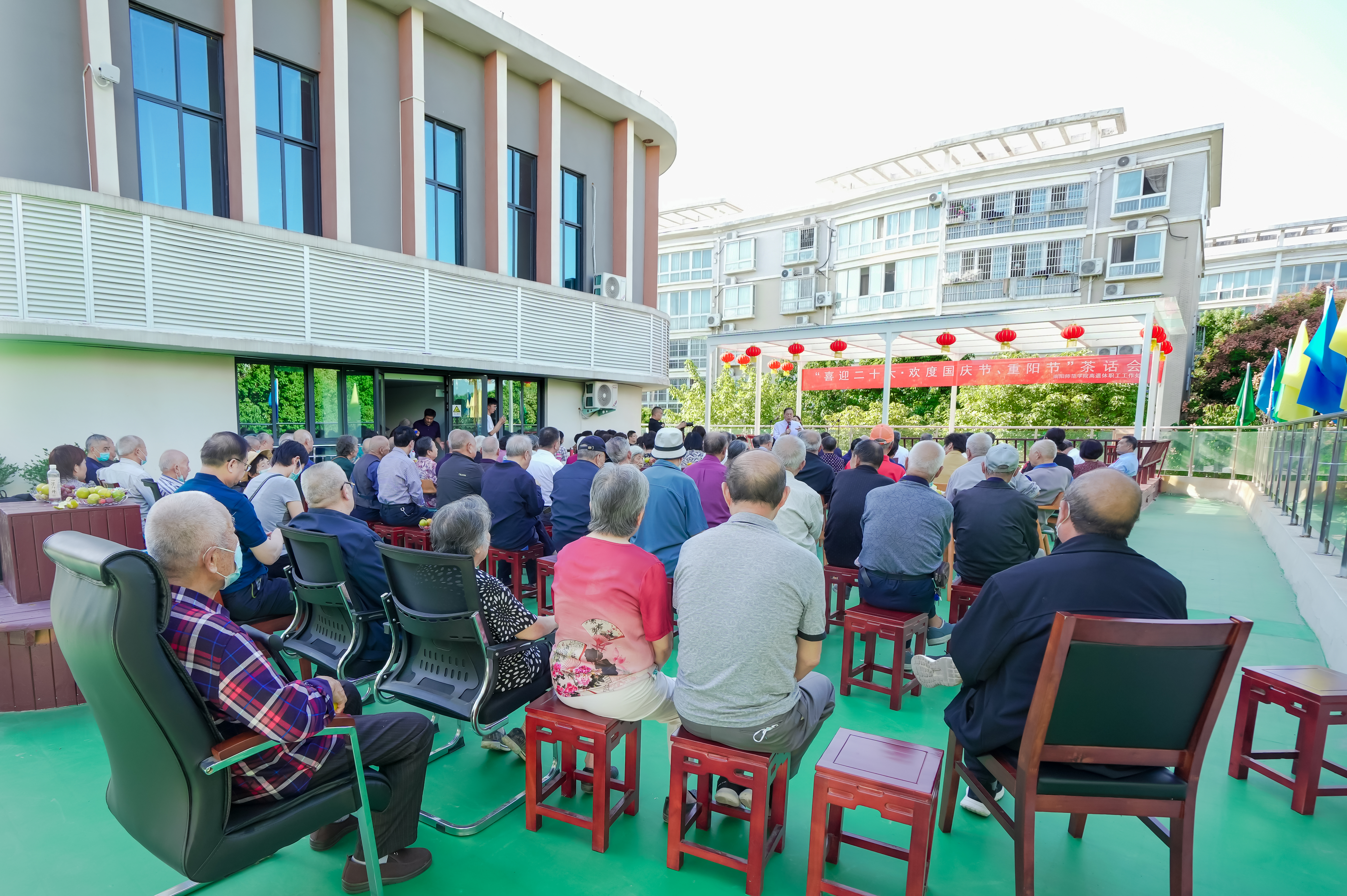 本网讯(李华杰/文 程虎/图)在国庆节、重阳节双节来临之际,9月29日下午,新葡萄官网在教职工活动中心二楼平台举办“喜迎二十大·欢度国庆节、重阳节”茶话会,离退休教职工110人参加。