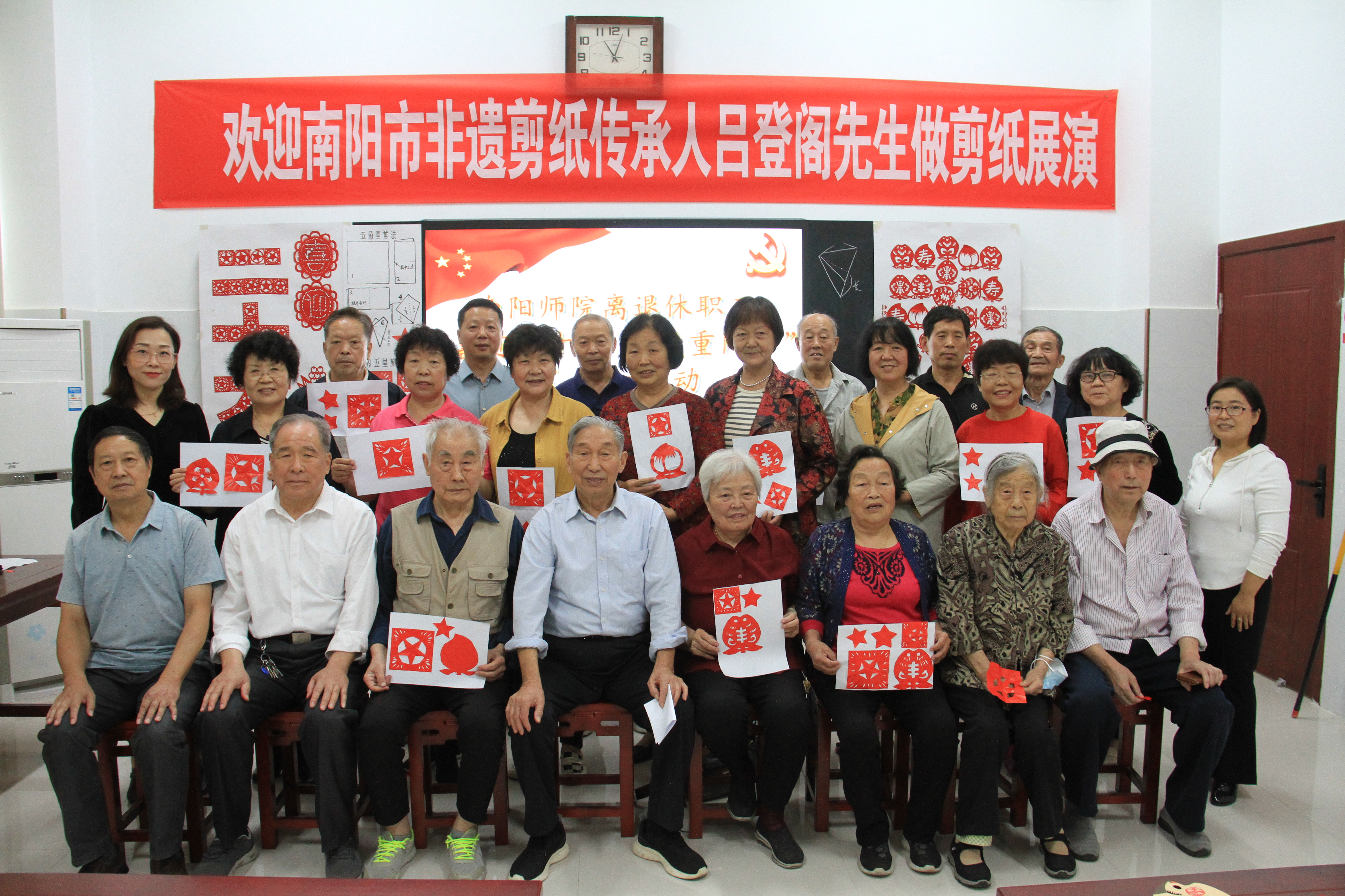 此次活动旨在弘扬中华民族敬老爱老的传统美德,运用剪纸这门中国最古老的民间艺术,表达新葡萄官网离退休职工对党的二十大即将胜利召开的美好期盼,营造欢乐祥和的节日氛围。