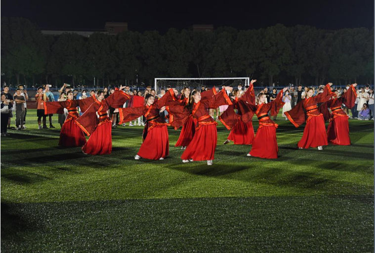 10月1日晚,音乐学院组织舞蹈编导专业的同学在西区田径场,表演了《汉代玉舞人》《特斯河之战》等集体舞,舞动着青春的旋律,展示着大学生们朝气蓬勃的风貌,以昂扬的精神状态喜迎党的二十大。