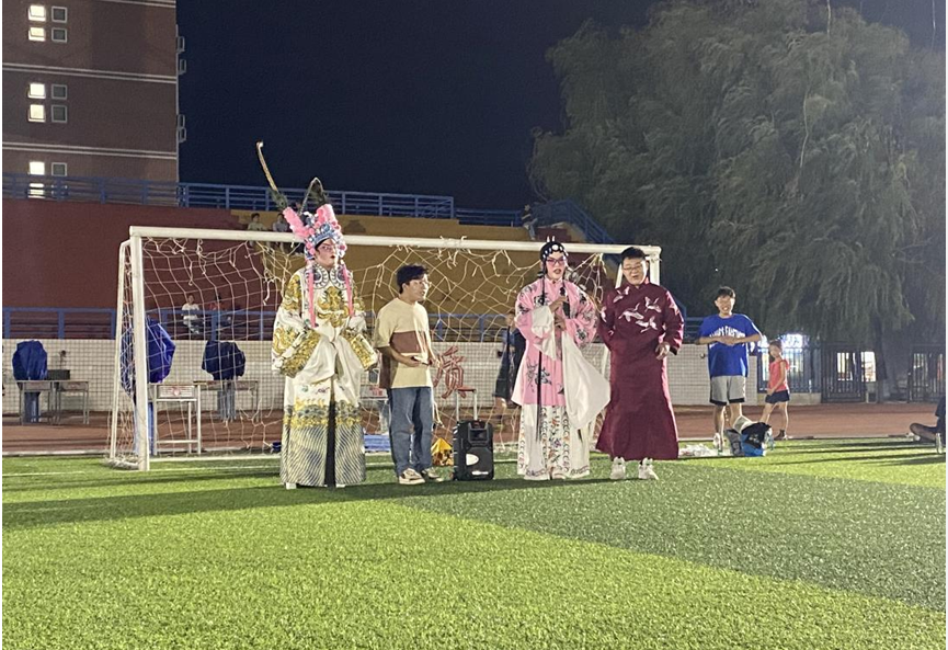 10月2日,学院戏曲社团的成员们在西区田径场全套妆造,表演了《朝阳沟》《锁麟囊》等传统戏曲。同学们热情高涨,纷纷围观,表示当代大学生就应该做中华优秀传统文化的传承者和弘扬者。(编审 余正道)