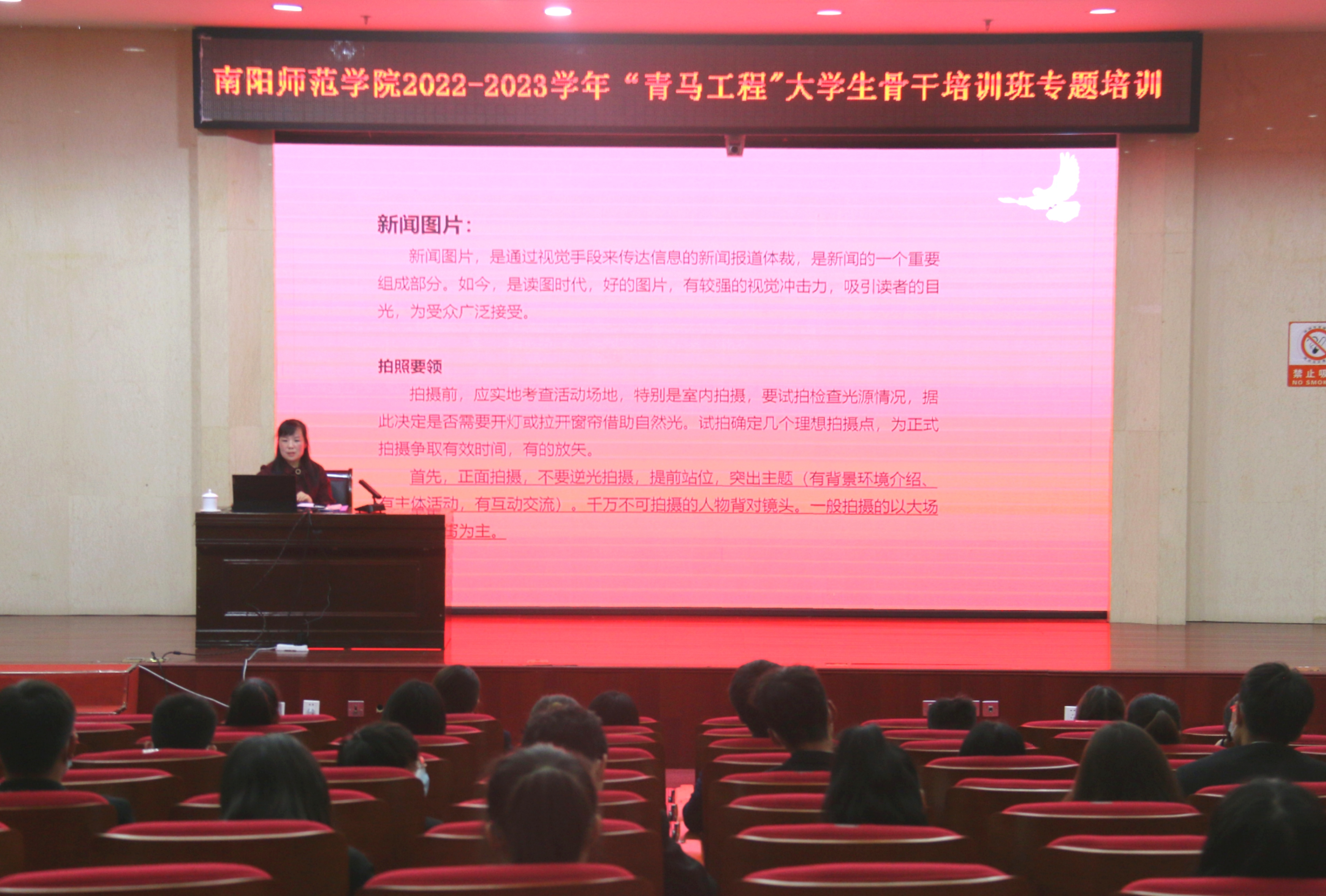 本网讯(李珂 陈秀凤/文彭雨欣/图)11月2日下午,新葡萄官网在西区图书馆一楼报告厅开展“学习二十大 奋进新征程”“青马工程”大学生骨干培训会。南阳日报社热线部主任、政务新媒台副台长王蕾,公共艺术教育中心主任王振伟担任主讲,校级及各二级学院青马骨干学员参加。
