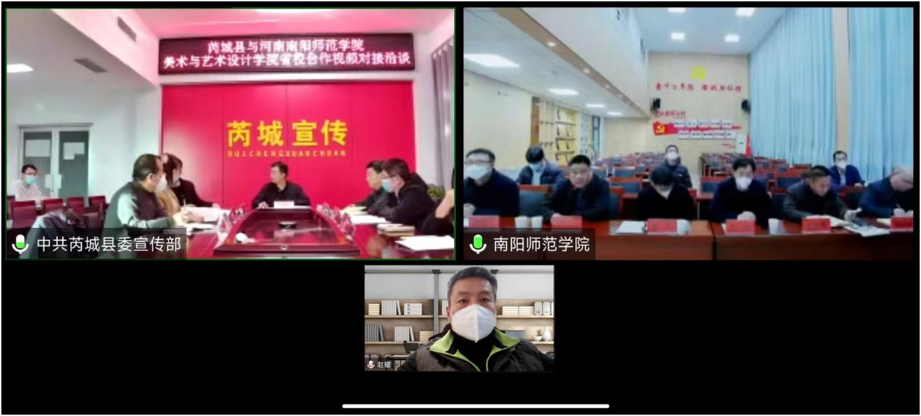 本网讯(张思涵/文 黄万埔/图)12月14日下午,新葡萄官网与山西省芮城县举行省校合作视频对接洽谈会视频会议。芮城县委宣传部常务副部长董社宏、组织部副部长焦江峰、党史研究室、团县委、永乐文化旅游投资有限公司等相关负责同志与新葡萄官网校企合作处负责人、美术与艺术设计学院领导班子及相关专业负责人参加此次洽谈会。洽谈会由美术与艺术设计学院副院长陈晅嵘主持。