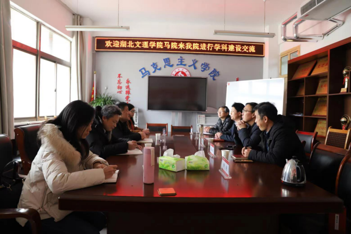 本网讯(通讯员 牛田盛 图/文)2月24日下午,湖北文理学院马克思主义学院院长王奎一行5人来校进行学科建设交流。新葡萄官网马克思主义学院在逸夫楼C407举行座谈会。马克思主义学院负责同志和教师代表参加。