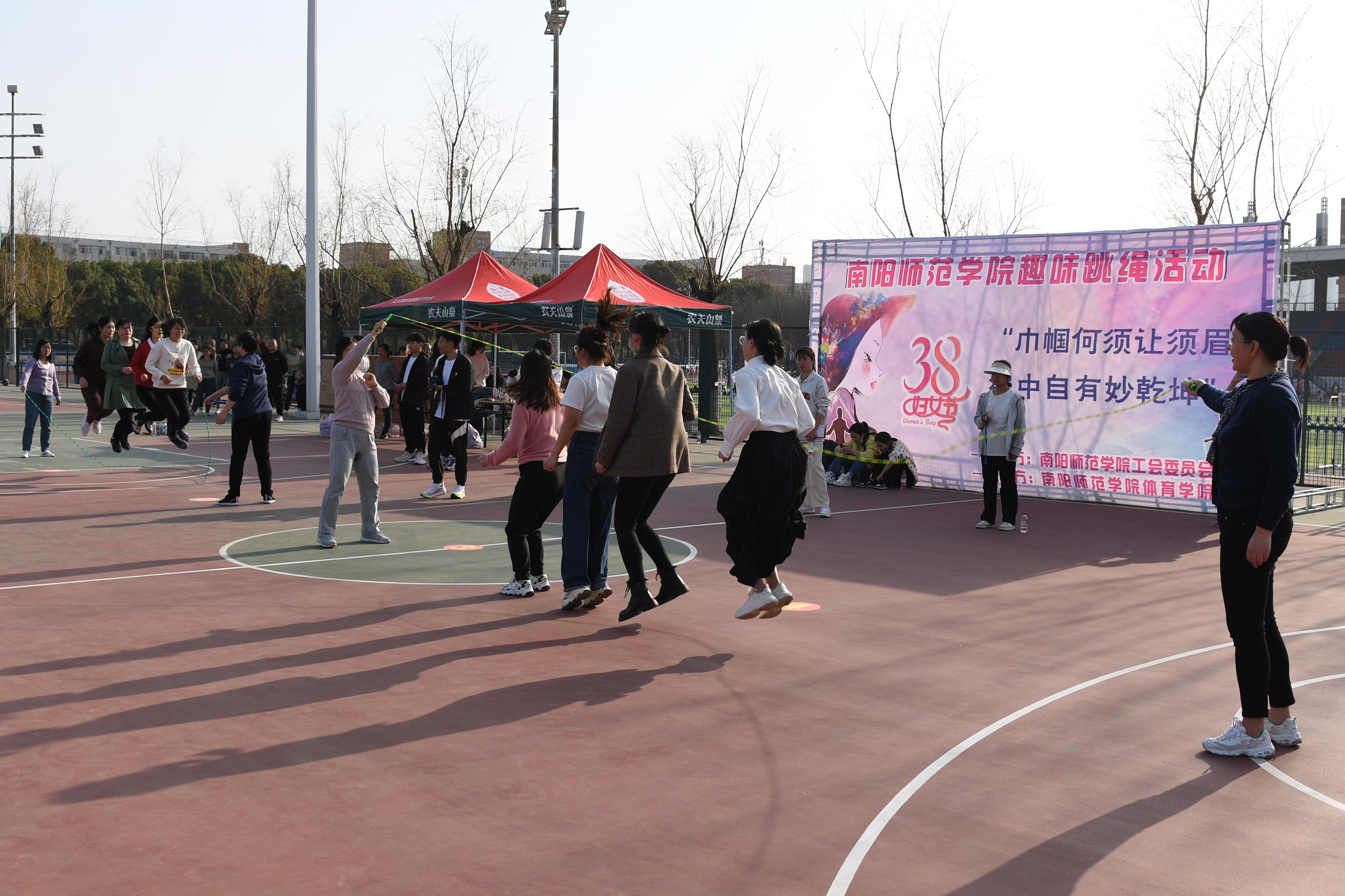 3月8日下午,校工会在中区篮球场举办教职工跳绳比赛。来自各分工会的29支代表队200余名选手参加比赛。本次比赛设“单人30秒速度跳绳”和“一分钟6人同步跳绳”两项,分别设团体和个人名次。经过两个多小时的比赛,外国语学院分会代表队荣获团体第一名,图书馆分会、后勤管理与服务中心分会一队、教育科学学院分会、珠宝玉雕学院分会、体育学院分会二队、体育学院分会一队和行政分会二队代表队荣获团体二至八名;体育学院分会李水云勇夺个人第一名,体育学院分会张育枫、文学院分会张睿、化学与制药工程学院分会宗路一、图书馆分会赵果、体育学院分会袁晓璐、体育学院分会裴东景与后勤管理与服务中心分会栗宁分获二至八名。