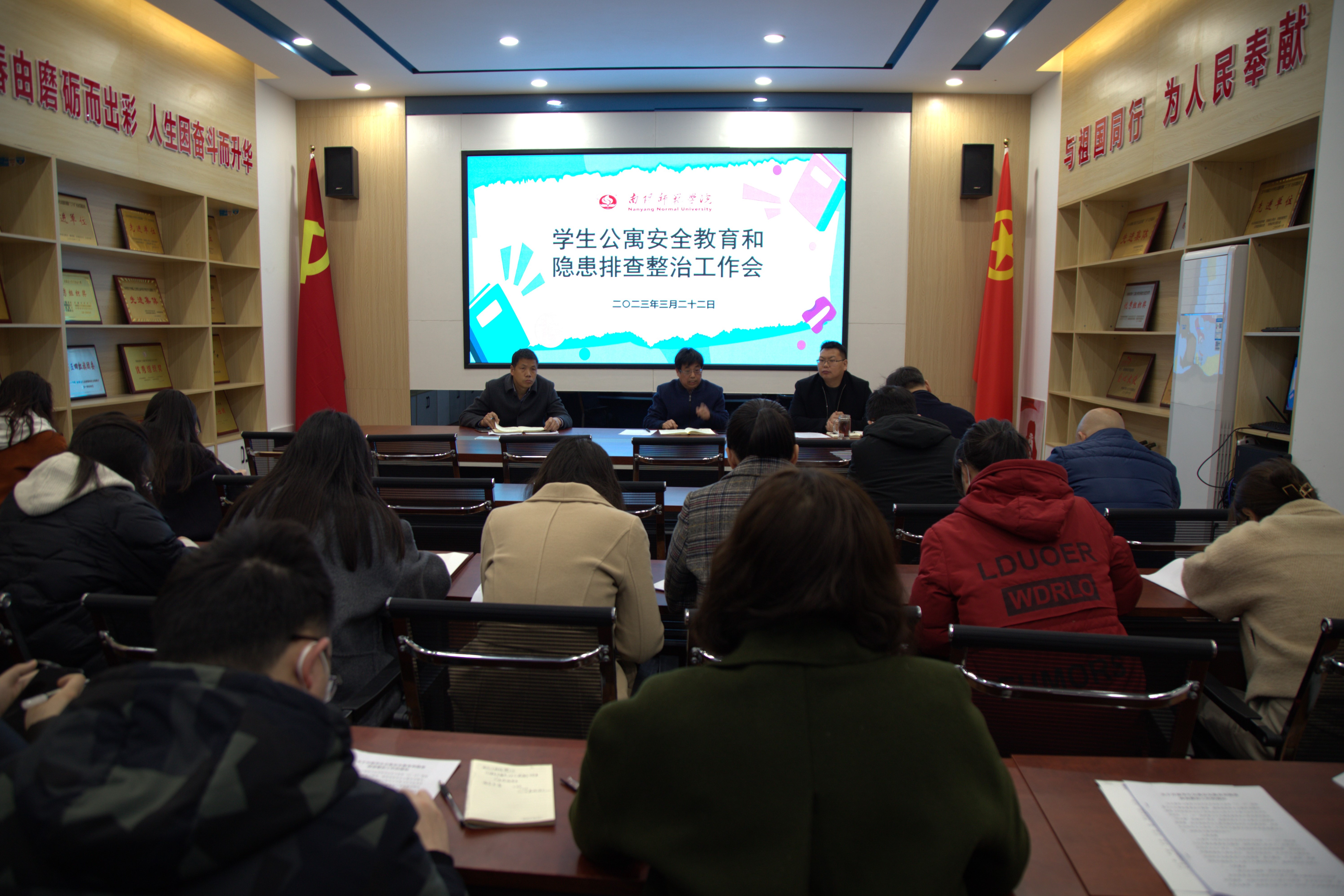 保卫处副处长刁良举就学生公寓安全教育和隐患排查整治工作提出具体要求,要求始终坚持以生为本,务必把工作落到实处。