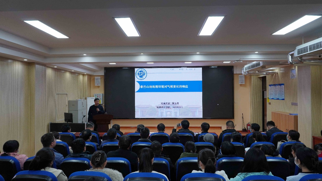 本网讯(王苇杭 郭子旗/文 王雨露 刘硕/图)3月22日下午,河南大学博士生导师、河南省优秀教师朱连奇教授在逸夫楼S605会议室为新葡萄官网师生作“秦巴山地地理环境对气候变化的响应”主题报告。新葡萄官网地理科学与旅游学院等相关学院教师和学生代表共100余人现场参会。
