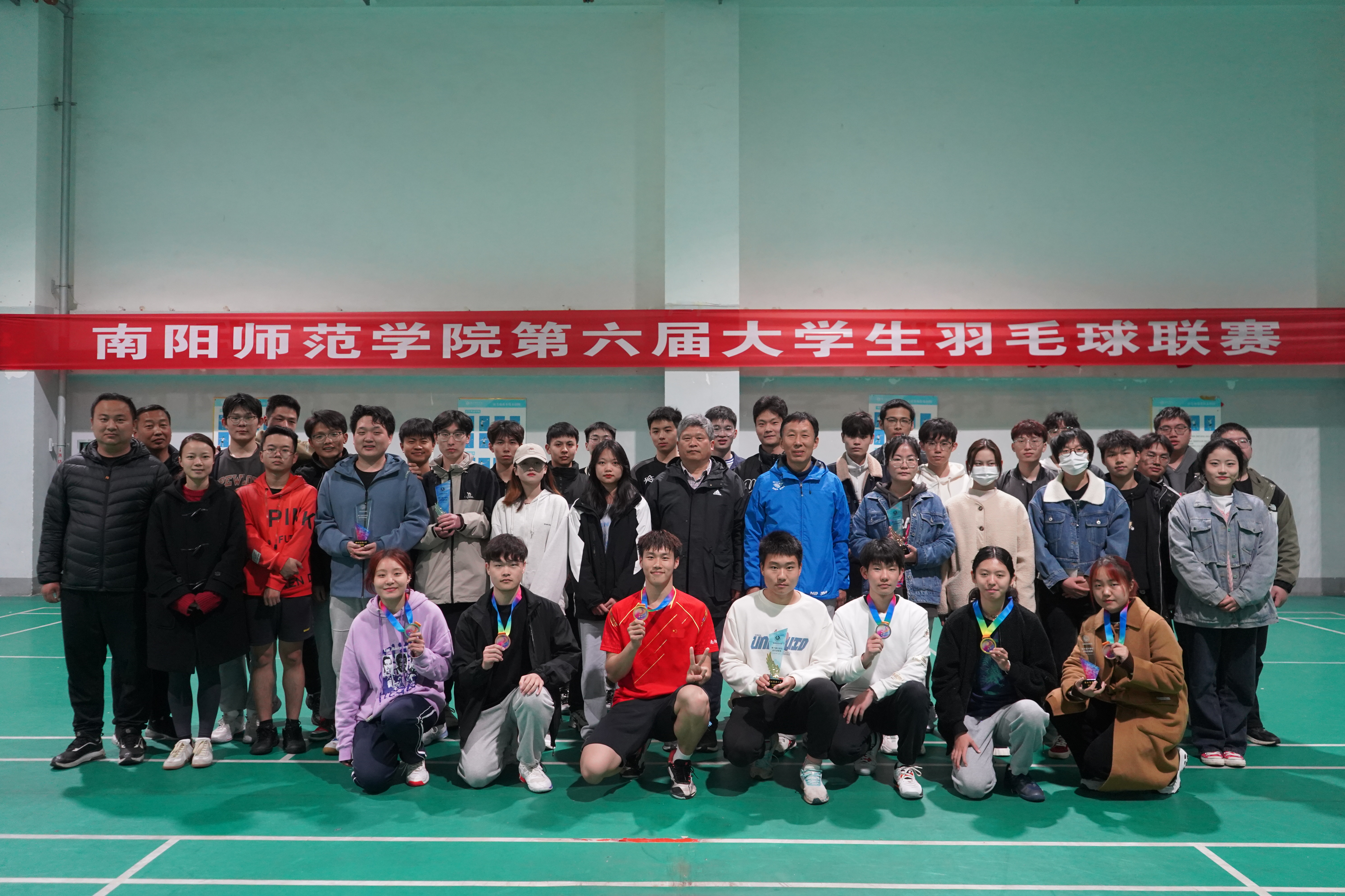 本网讯(段立军庞 林庆/文 王安正/图)3月22日下午,新葡萄官网第六届大学生羽毛球联赛颁奖仪式在中区篮球场举行。体育学院相关负责同志出席本次活动,全校共21个学院代表队300余名运动员参加。