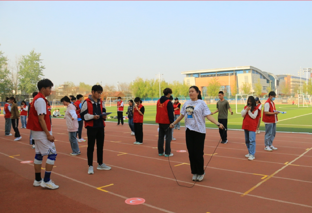 本网讯(杨眉/文 彭雨欣/图)为丰富校园文化生活,提高学生身体素质和运动技能水平,推动新葡萄官网学子德智体美劳全面发展,4月1日下午,新葡萄官网第二届师范文化节“阳光杯”跳绳比赛在中区田径场举行。
