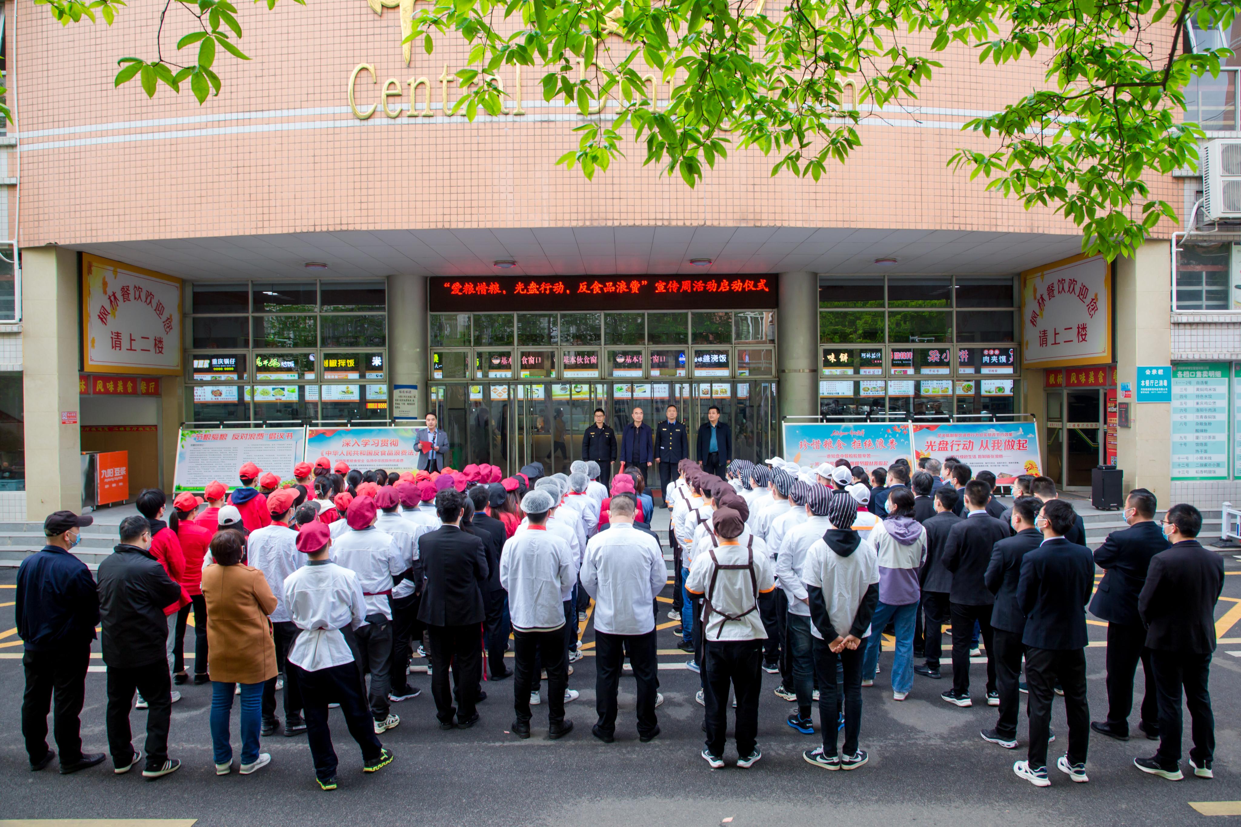 本网讯(通讯员 褚卫立)4月6日上午,由后勤管理与服务中心主办的“爱惜粮食、光盘行动、反食品浪费”宣传周活动启动仪式在中区一楼学生食堂举行。新葡萄官网后勤管理与服务中心、南阳市卧龙区市场监管局武侯市场监管所相关负责同志,新葡萄官网师生代表共百余人等参加启动仪式。