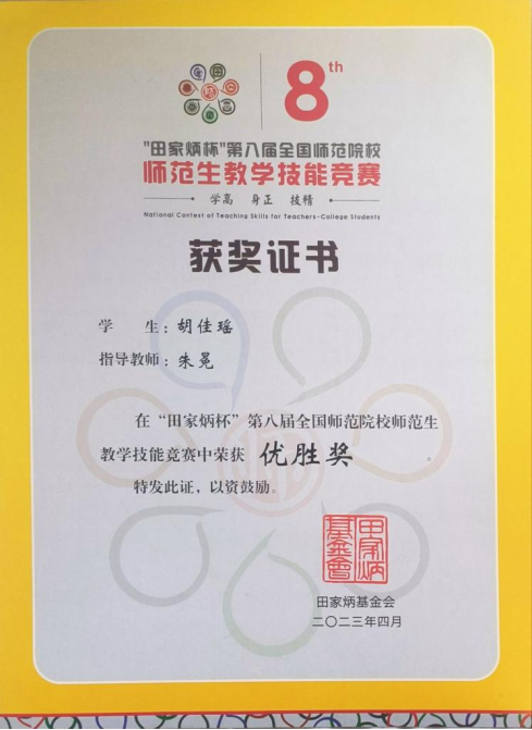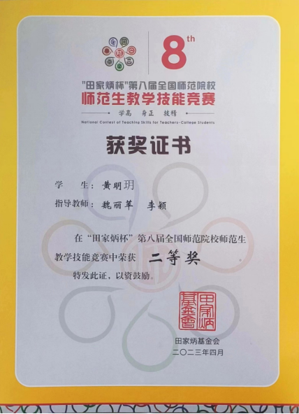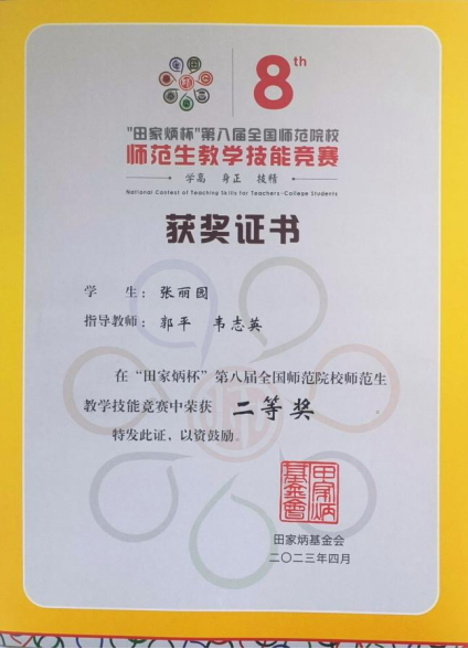 本网讯(郭平 师书魁/文 郭平/图)4月14一16日,“田家炳杯”第八届全国师范院校师范生教学技能竞赛决赛在浙江师范大学举办。新葡萄官网马克思主义学院张丽园同学荣获思想政治教育组二等奖,文学院黄明玥同学荣获汉语言文学组二等奖,外国语学院胡佳瑶荣获优胜奖。