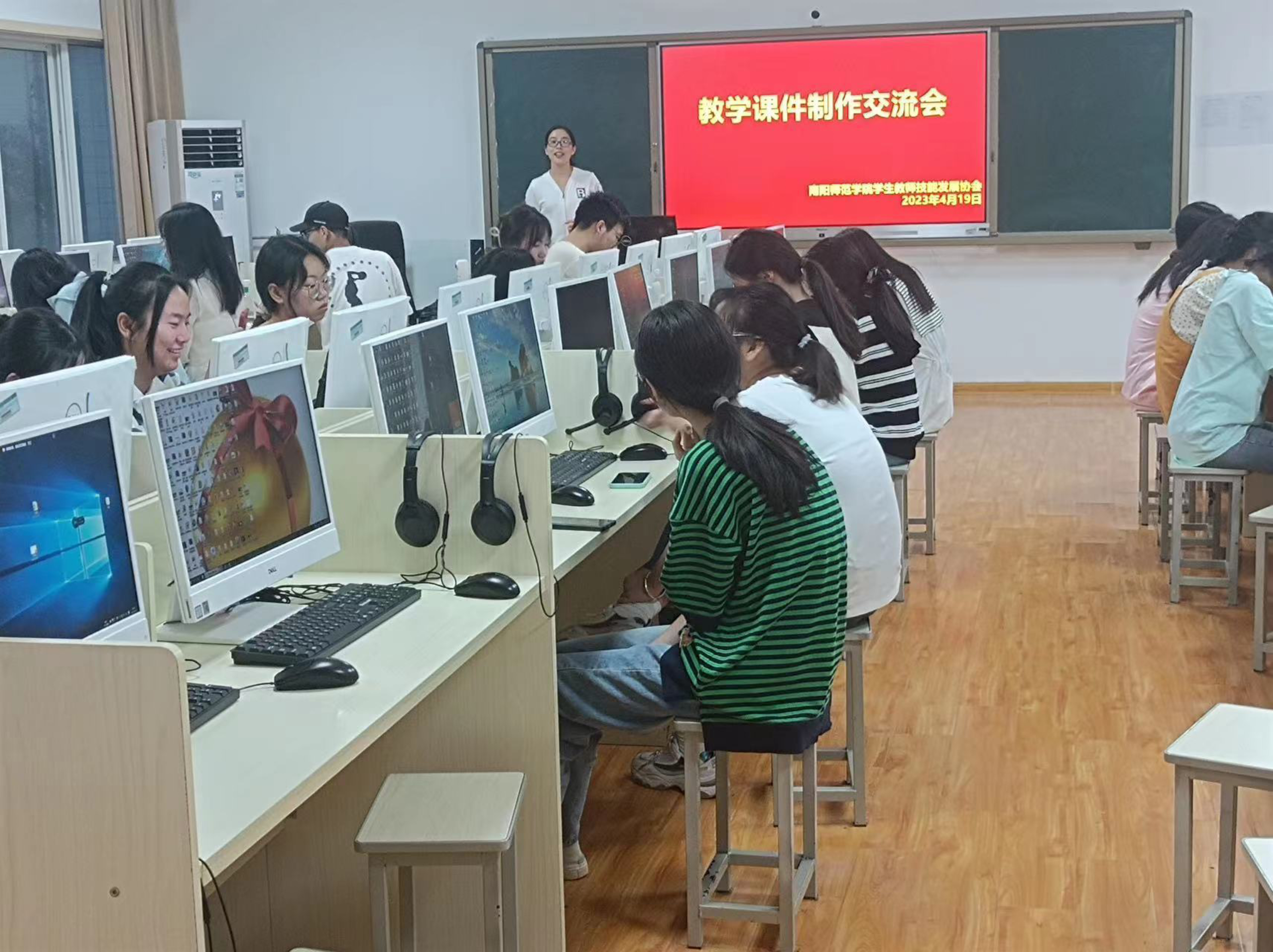 4月19日,学生教师技能发展协会在新葡萄官网科技大楼209室开展“课件设计交流会”主题活动。指导老师讲授课件制作相关知识,社团成员们依次展示自己制作的PPT课件,老师针对汇报过程中出现的问题进行解答及专业点评,社团成员们相互学习交流。