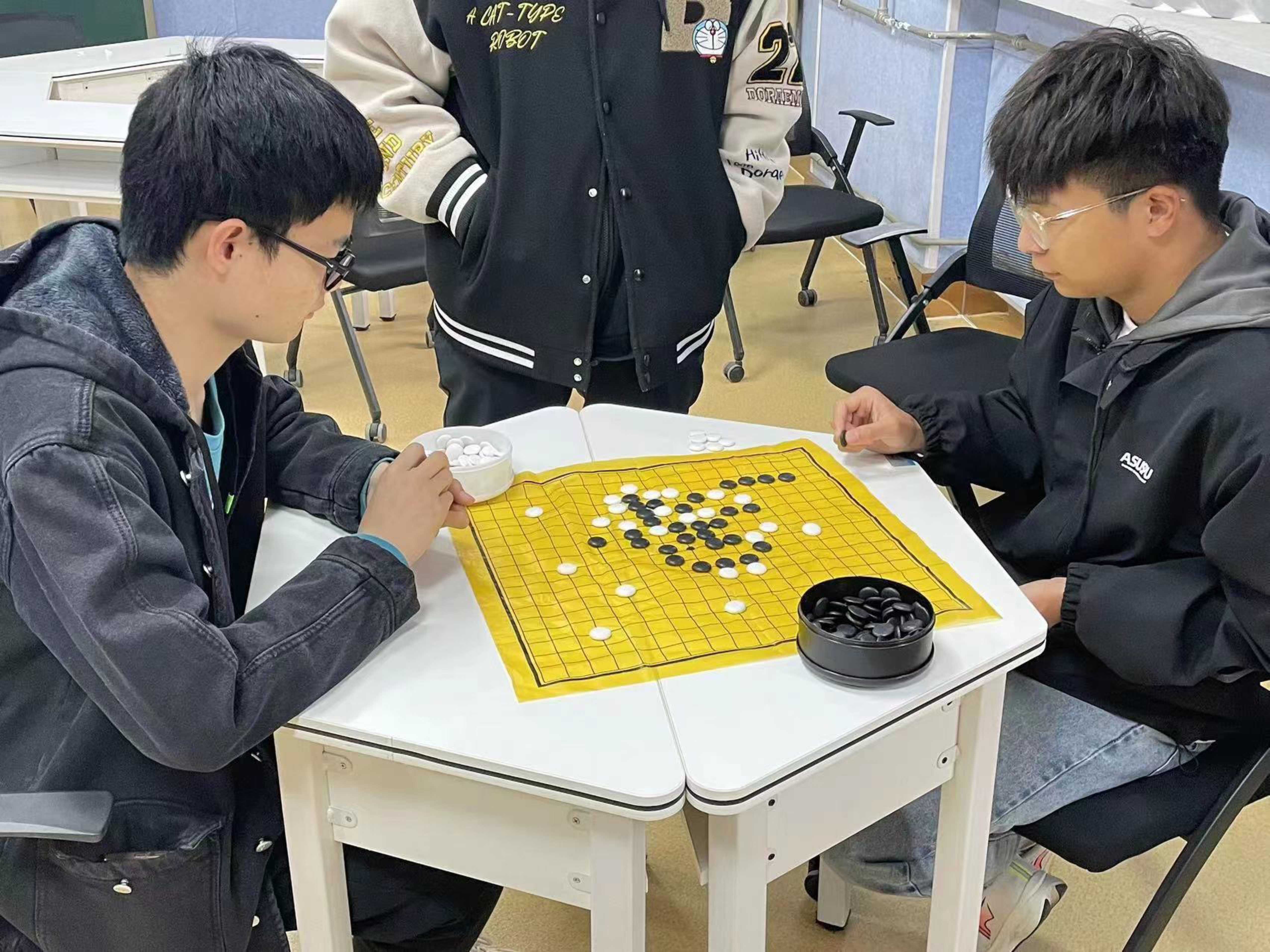 4月22日,卧龙棋苑在新葡萄官网博睿楼210室举办棋苑常规活动。社团成员们通过抽签进行博弈对决,展开了一场场棋弈对阵。