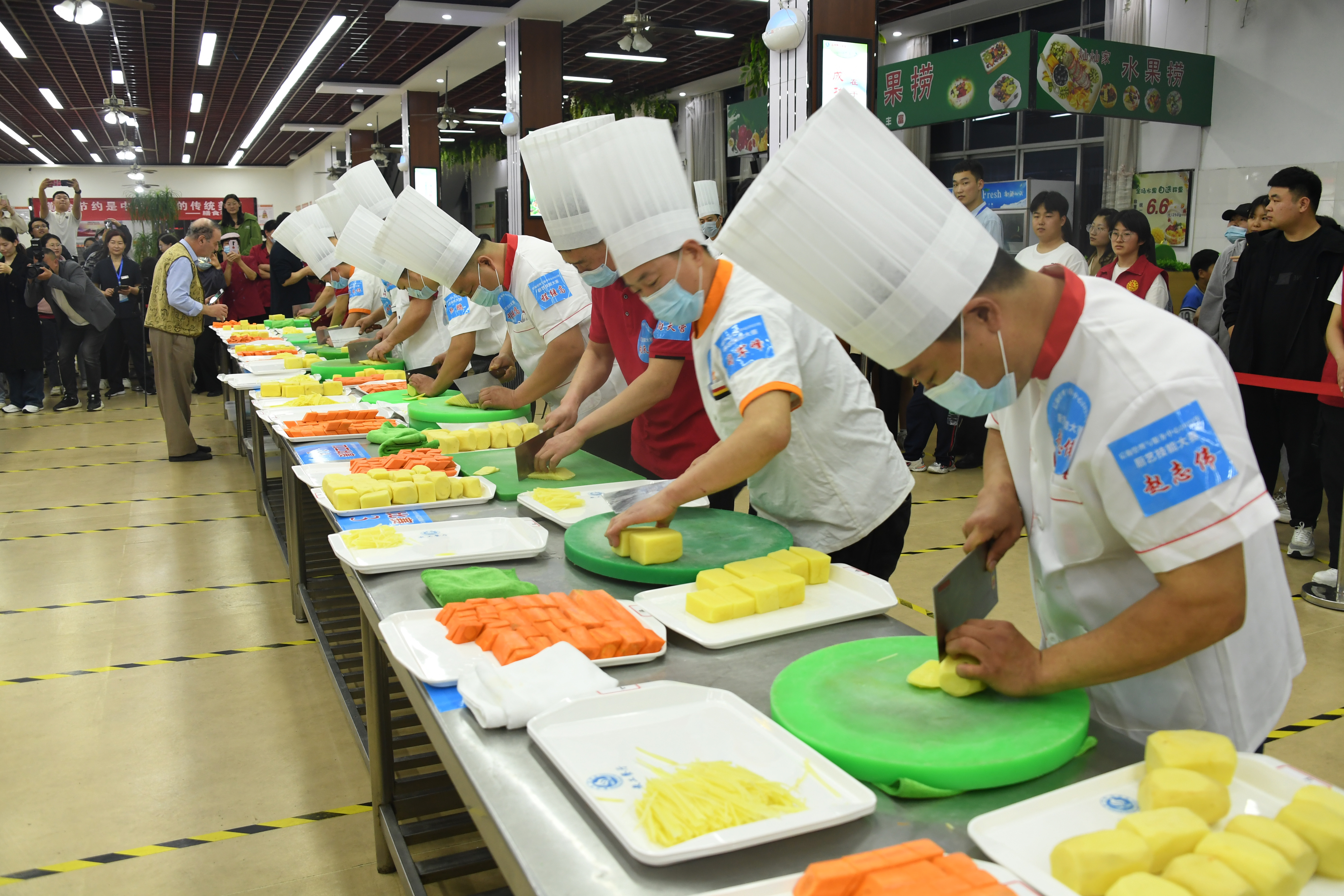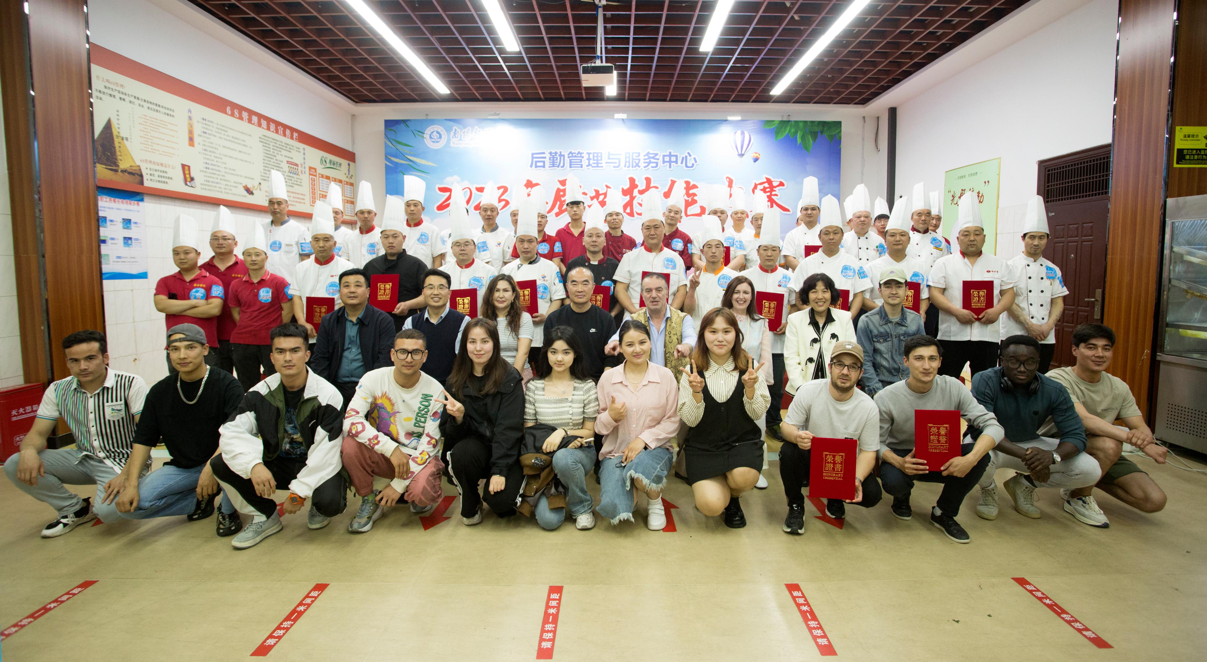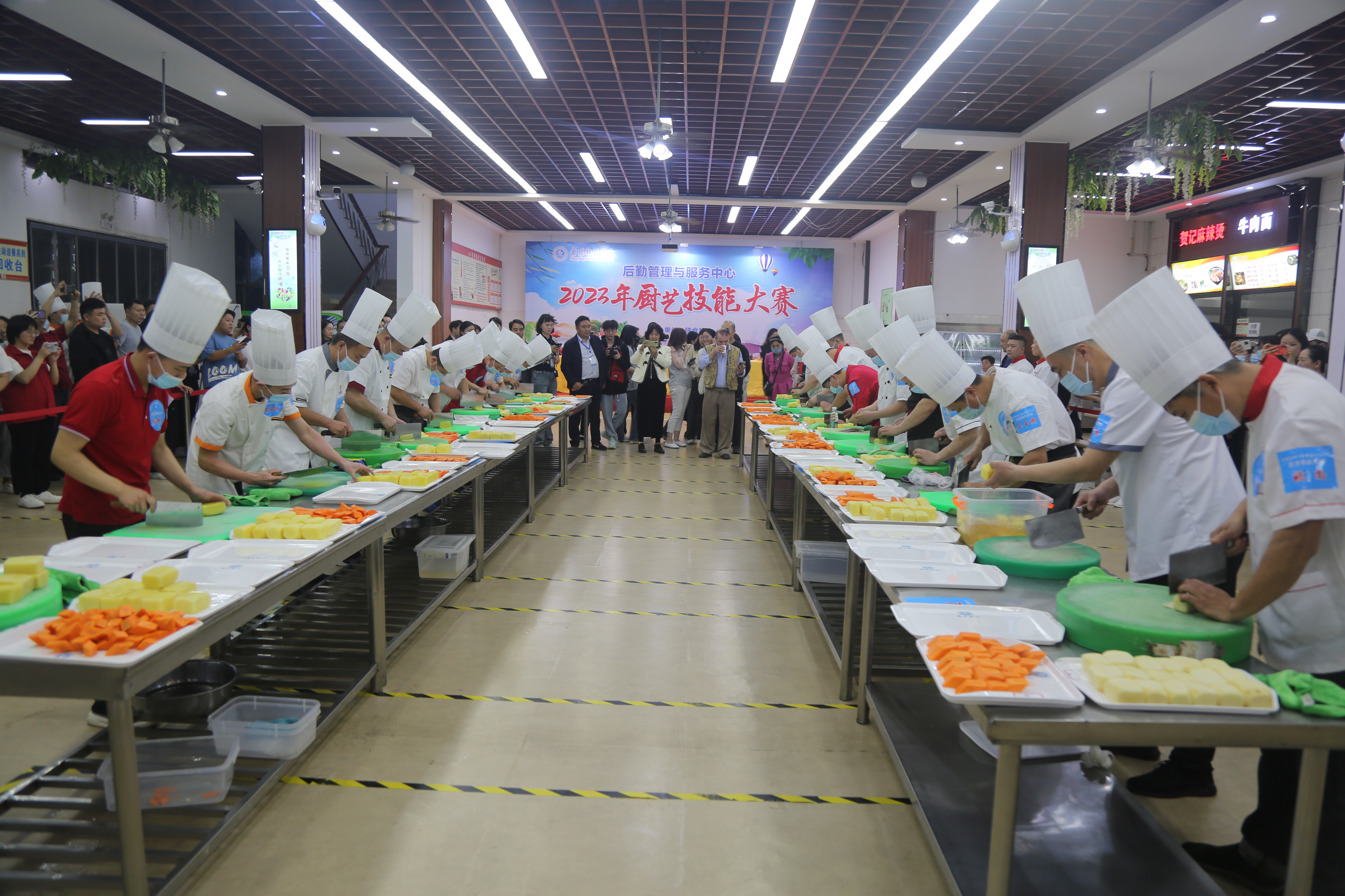 本网讯(杨永青/文 曹艺鹏 崔雅雯/图)4月27日晚,后勤管理与服务中心2023年度厨艺技能大赛在新葡萄官网东区食堂举办。后勤管理与服务中心、国际交流合作处、学生处相关同志,膳食科参赛选手、学生代表参加,300余名师生现场观摩。