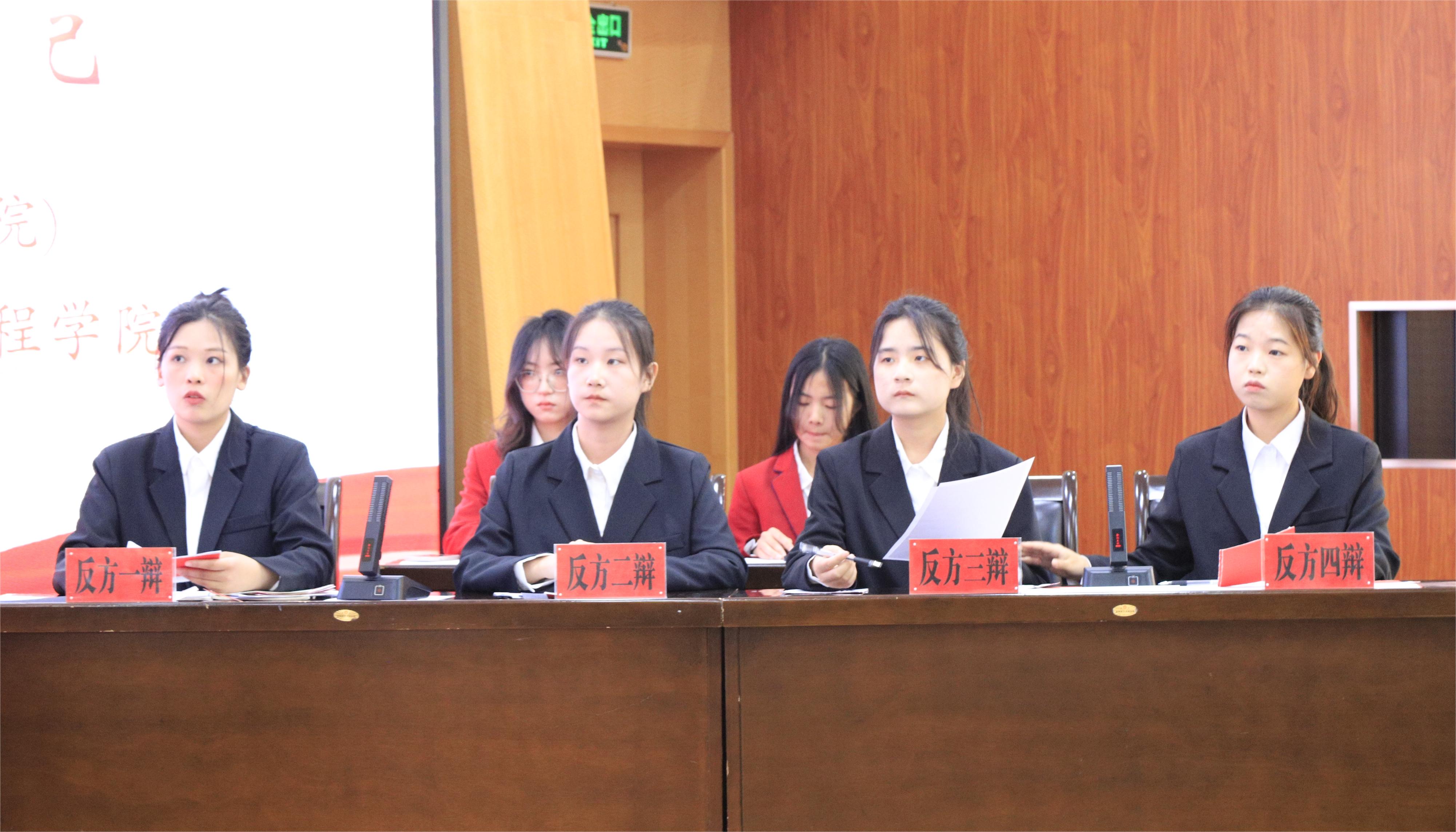 比赛共设有陈词、攻辩、攻辩小结、自由辩论、观众提问、总结陈词六个环节。正反方围绕“面对精神内耗我们需要接纳自己还是鞭挞自己”辩题展开辩论。正方教育科学学院代表队观点为面对精神内耗需要接纳自己,他们从缓解心理压力、设置合理的目标、走出内耗困境等方面立论和展开陈词。反方土木建筑工程学院代表队观点为面对精神内耗需要鞭挞自己,他们从后悔过去、纠结当下、担心未来、改变自己等方面立论和展开陈词。整场辩论赛中,辩手们或言简意赅,或语锋敏捷,各据营垒,慷慨激昂,场面精彩纷呈。最终,土木建筑工程学院代表队赢得本次辩论赛的胜利,邓亚美同学获最佳辩手。