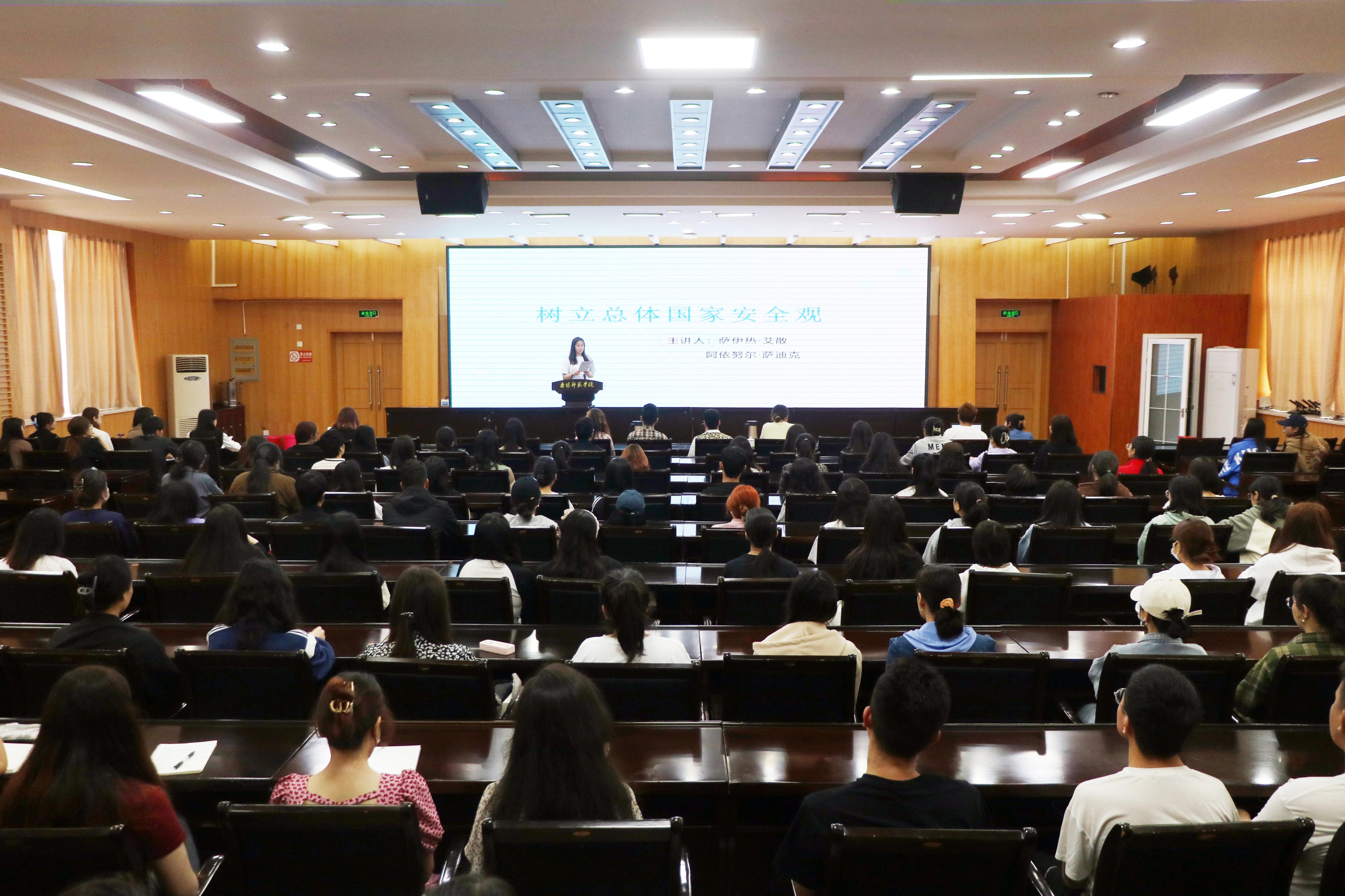 主持人萨伊热·艾散系统阐释了总体国家安全观的基本内容,结合时代背景分析了大学生树立国家安全观的必要性。阿依努尔·萨迪克、祖丽乎玛尔·艾则孜,热孜娅·赛买提等八位同学从国土安全、军事安全、网络安全等不同角度,结合个人成长经历,讲述自己对新时代国家安全观的看法,共同感悟新时代国家安全成就,强化维护国家安全的责任感和能力。