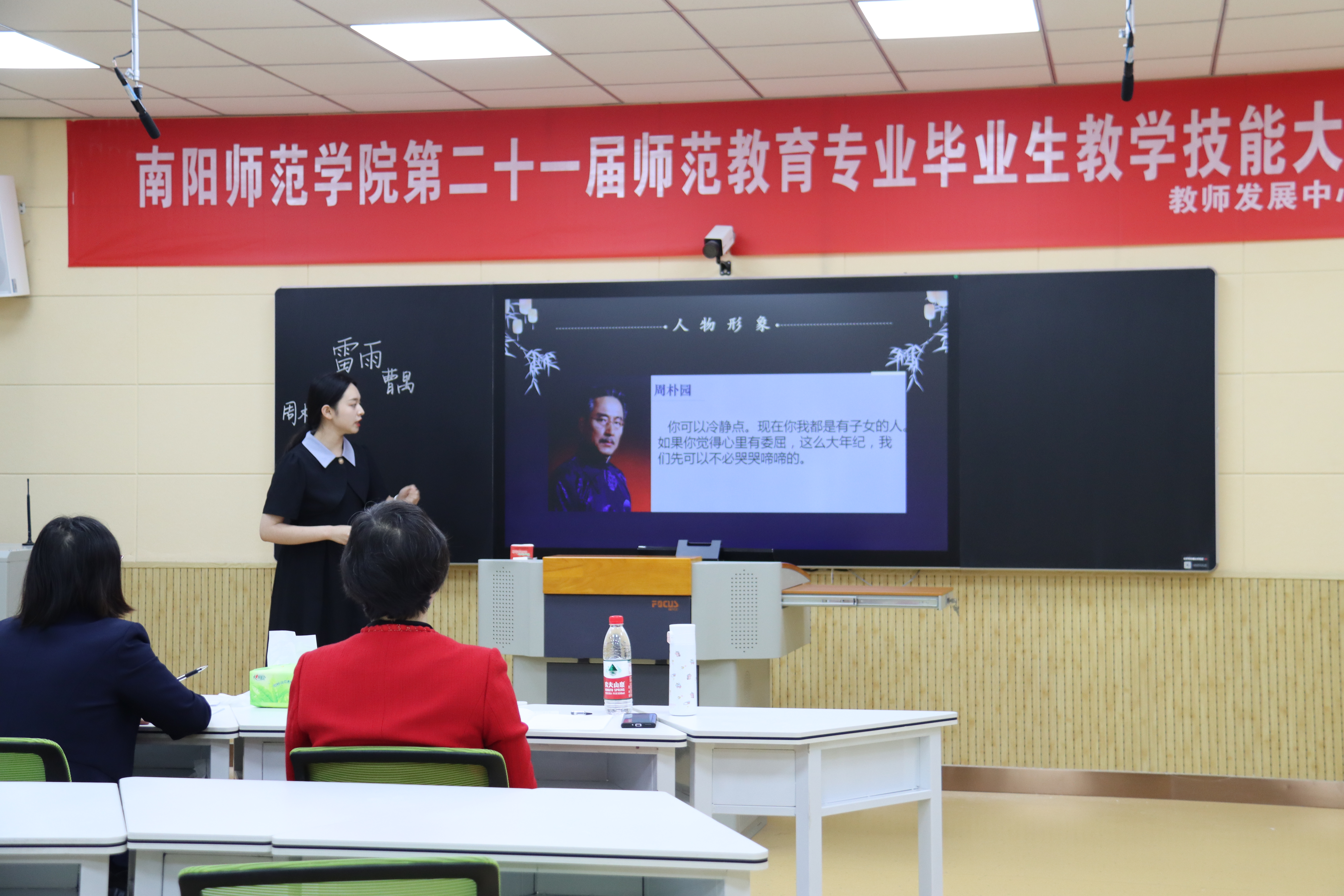 第二十一届师范教育专业毕业生教学技能大赛分为三个阶段,各学院从2022年12月份开始重点培育,2023年4月上旬组织了初赛选拔,全校来自13个学院的58名师范专业学生进入决赛。根据大赛相关要求,本次比赛包括微型课、答辩、才艺展示三个环节。微型课环节限时10—13分钟,要求利用多媒体教学手段、板书共同展示教学内容。答辩环节中,评委围绕参赛选手说课内容,就教学设计、教学方法、教学内容、教育理念等方面提问,选手给予相应回答,限时3分钟。这两个环节旨在提高师范生的教学技能、提升师范生的核心素养。才艺展示环节中,参赛选手进行了器乐演奏、舞蹈、歌唱、朗诵、书法等方面的展示。经过激烈角逐,最终评出一等奖27名。(编审 刘潇潇)