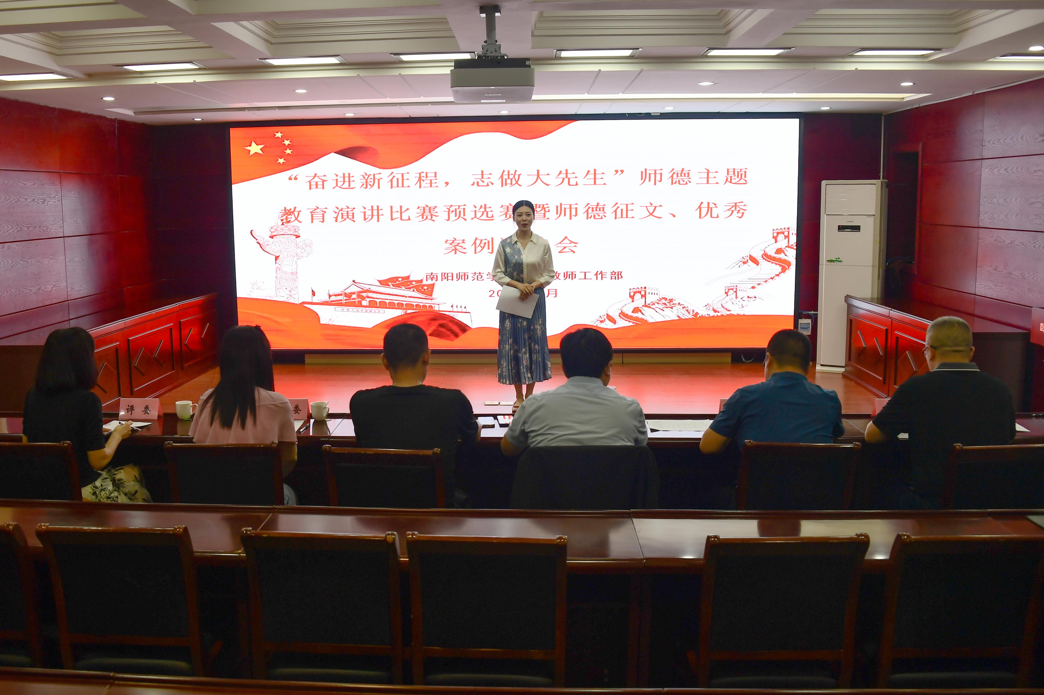 本网讯(李冬哲/文 杨毅鑫 贾一琳/图)为进一步加强新葡萄官网师德师风建设,全面提高师生员工职业素养,6月7日下午,党委教师工作部在办公大楼一楼东会议室举行“奋进新征程,志做大先生”师德主题教育演讲比赛预选赛暨师德征文、优秀案例评选会。党委教师工作部、宣传部、工会、团委、新闻与传播学院、文学院等有关同志参加。