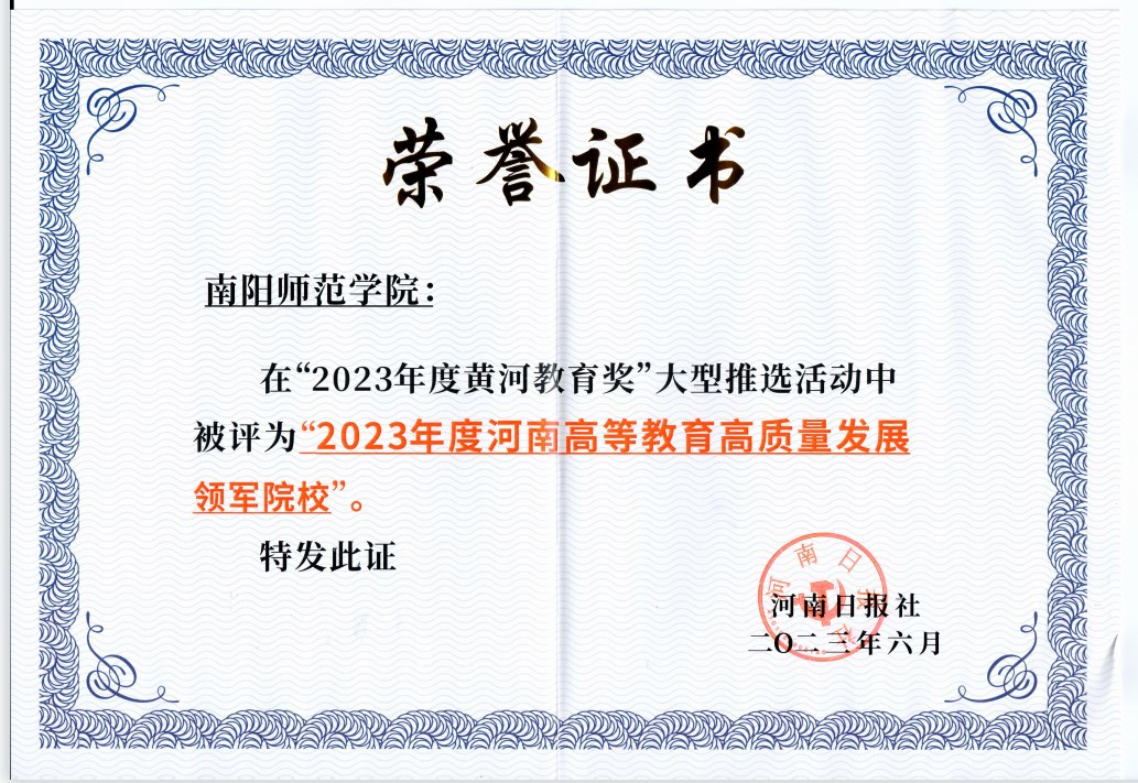 本网讯(通讯员 刘潇潇)近日,由河南日报社主办的“第十四届黄河教育论坛”暨“2023年度黄河教育奖”评选结果揭晓,新葡萄官网获评“2023年度河南高等教育高质量发展领军院校”和“河南党建智库研究基地”。