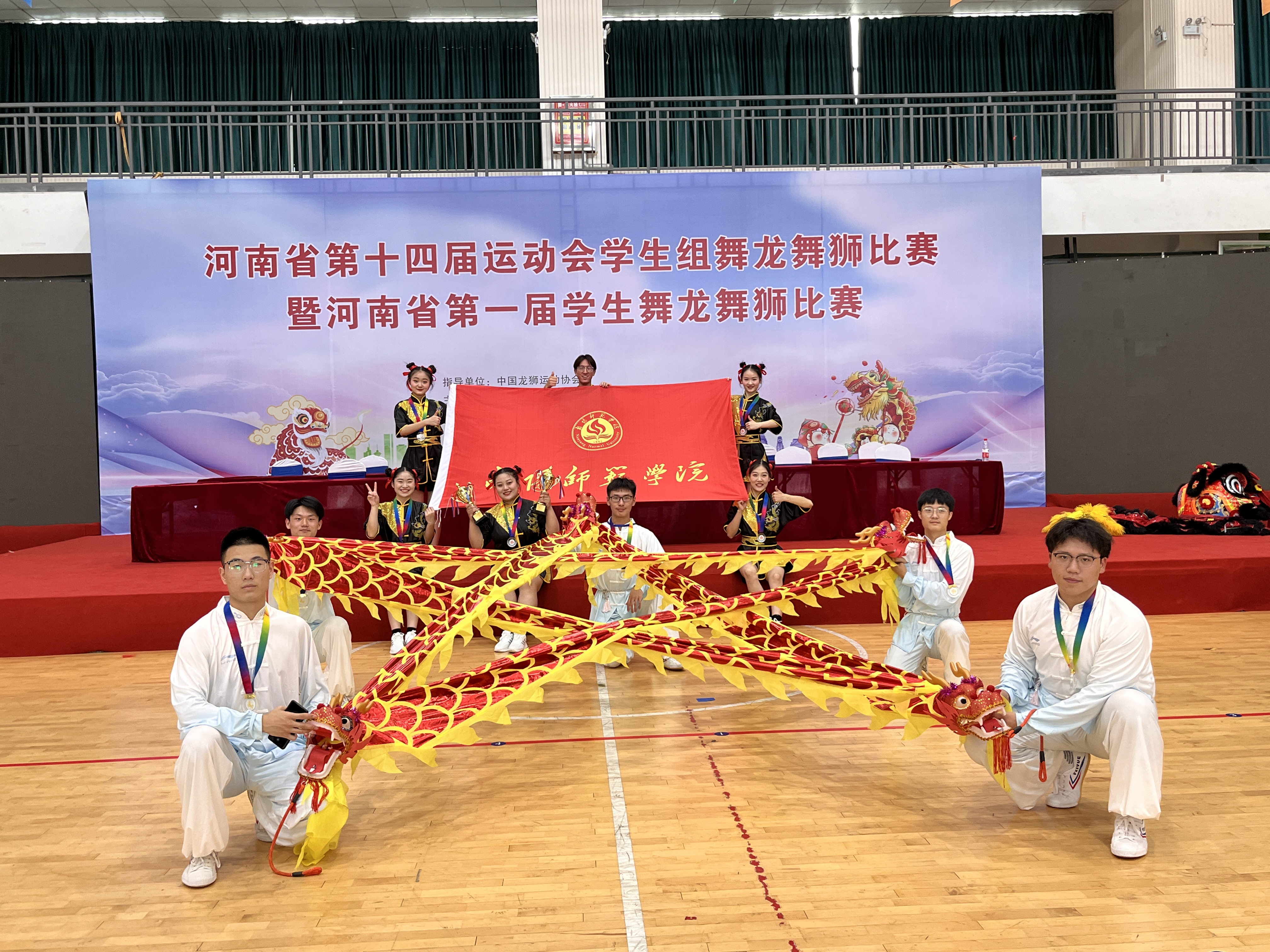 本网讯(鲁丽/文 何静/图)6月8日-11日,河南省第十四届运动会学生组舞龙舞狮比赛暨河南省第一届学生舞龙舞狮比赛在平顶山举行。此次比赛共有来自省内的15所高校近300名运动员参加,分别角逐舞龙、南狮、北狮、健身龙舞4个大项15个小项。新葡萄8883官网AMG代表队派出11位参赛队员,获得健身龙舞《崛起中国龙》规定套路比赛第一名和《舞出我中华》规定套路比赛第三名的好成绩。这是新葡萄官网首次参加此类项目并获奖,实现了龙狮项目零突破。