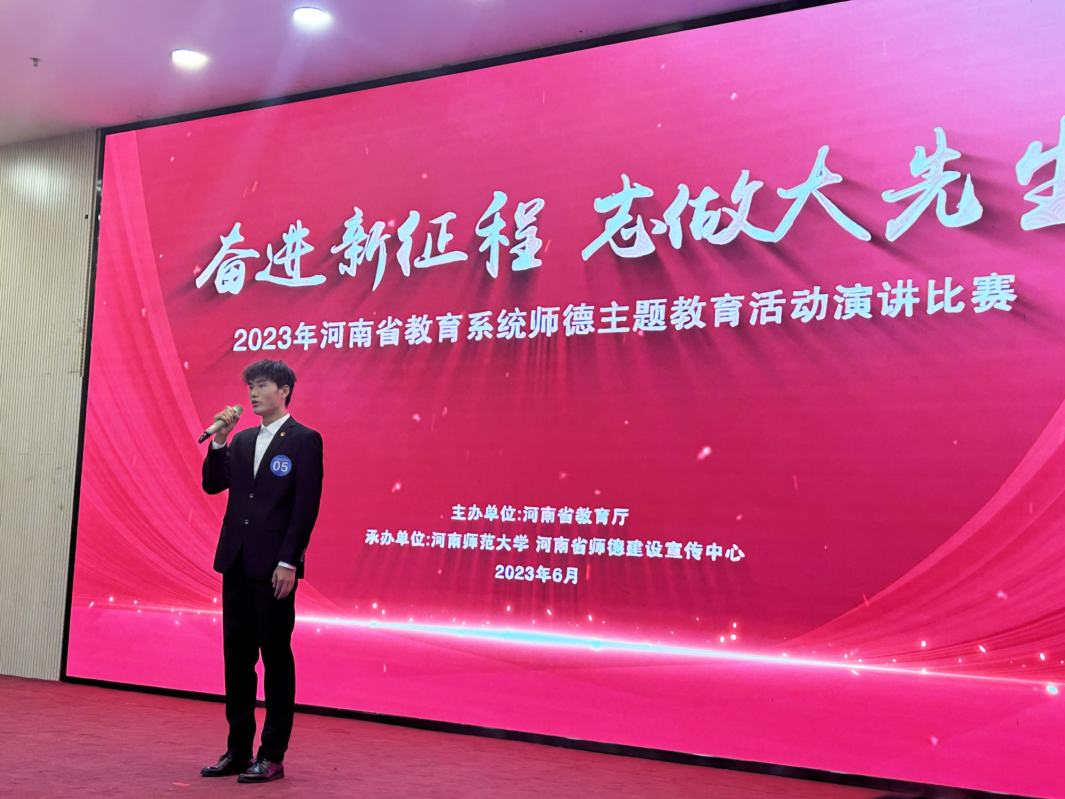本网讯(通讯员 李果)6月17—18日,河南省教育厅主办的“奋进新征程 志作大先生”2023年河南省教育系统师德主题教育活动演讲比赛在河南师范大学举行。新葡萄官网党委教师工作部负责同志带领教师学生代表参加此次比赛。经过两天的角逐,新葡萄官网选手分别获得教师组和学生组一等奖。