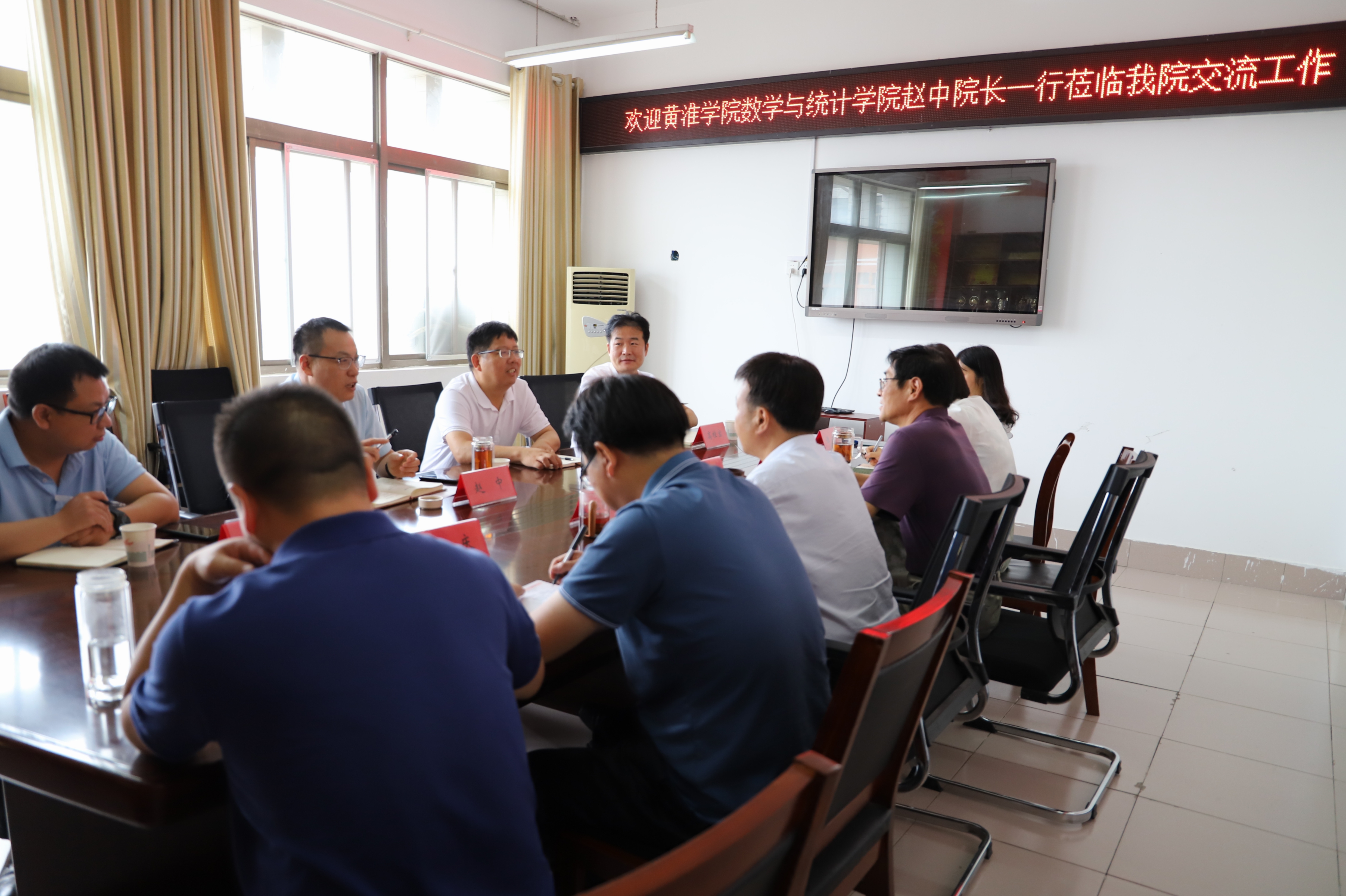 本网讯(虎大力/文 张露涵/图)为促进省内高校之间的合作交流,共享学科建设和人才培养经验,6月17日下午,黄淮学院数学与统计学院一行4人到新葡萄官网交流工作,会议在逸夫楼C507举行。数学与统计学院负责同志及骨干教师参加。会议由数学与统计学院院长王顺钦主持。