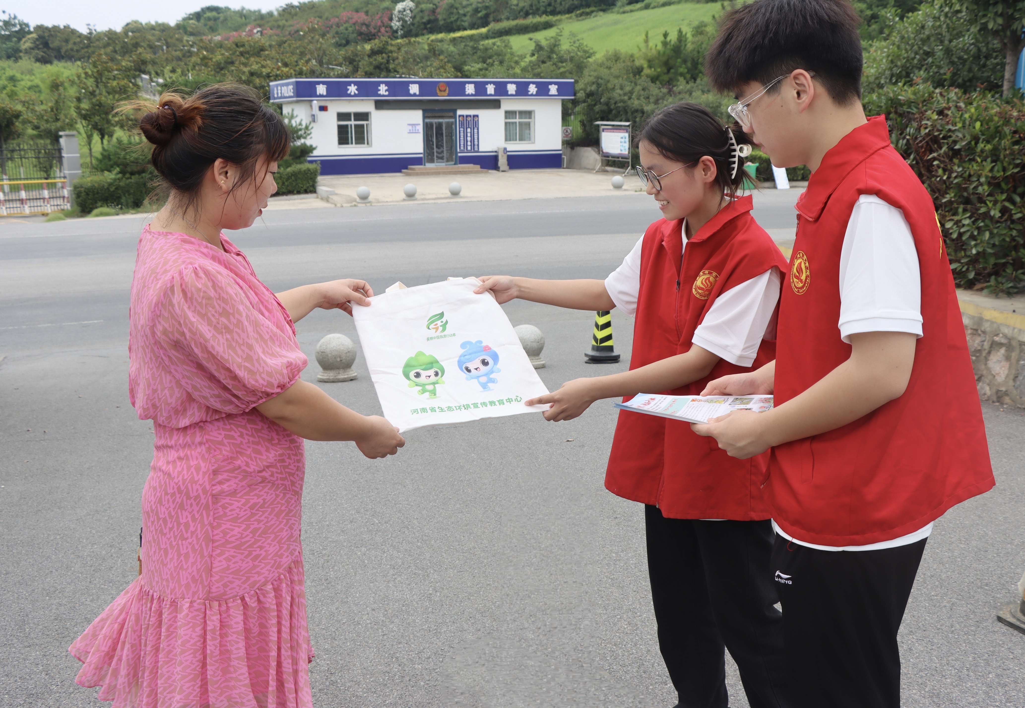 6月28日,水资源与环境工程学院南水北调中线渠首志愿服务队赴南阳市淅川县开展暑期“三下乡”社会实践活动。学院青年教师刘少博带领志愿者们跟随习近平总书记的足迹来到渠首大坝广场,向志愿者介绍丹江口水库周边生态环境,科普水资源现状和保护水资源的重要意义。志愿者们向周围居民和游客发宣传页,提高周围居民珍惜水、节约水、保护水的意识。