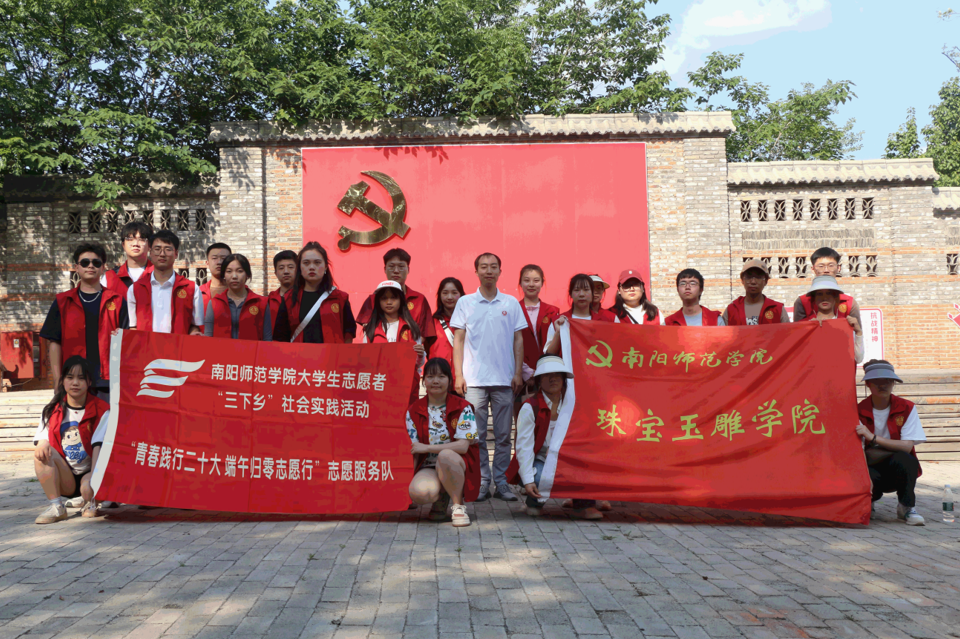 6月24日,珠宝玉雕学院“青春践行二十大,端午归零志愿行”志愿服务队赴南阳市卧龙区归零文化村开展暑期“三下乡”社会实践活动。志愿者们向参加活动的小朋友们发放了宣传册和倡议书,介绍端午节的由来和习俗,并带领小朋友们做手工。志愿者们还积极投身归零文化村的义务劳动,协助餐厅和后勤等部门完成服务保障等工作。随后学院团委副书记徐智泉带领团队成员在归零文化村党建广场参观主题党建展览,重温了中国共产党的光辉历史。