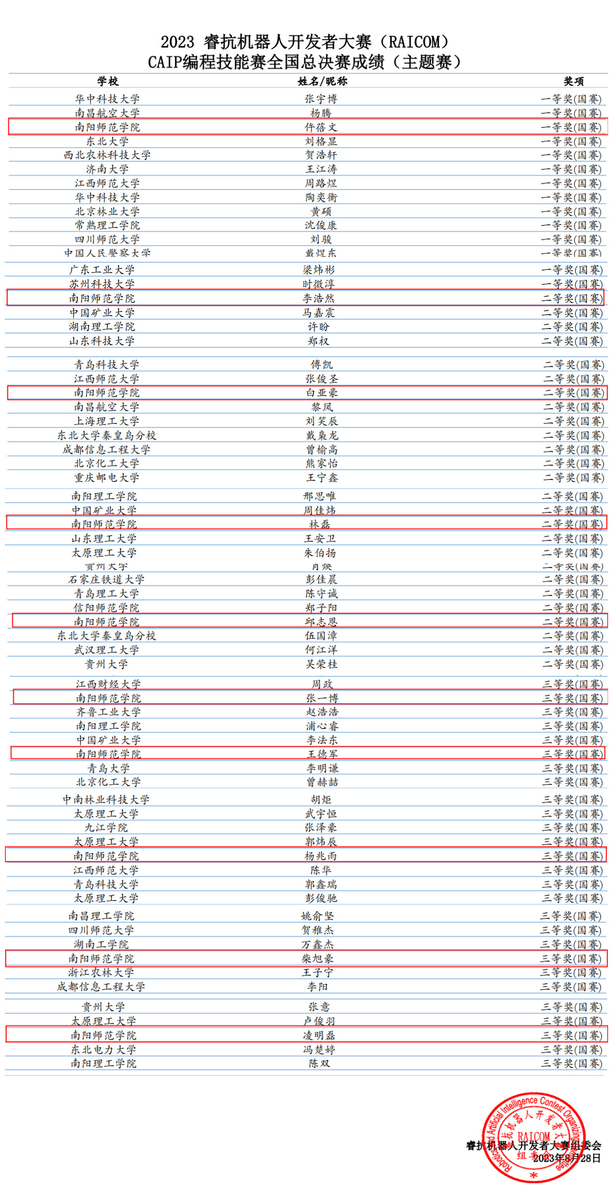 本网讯(通讯员 齐庆磊 兰义华)近日,从2023年睿抗全国机器人开发者大赛(RAICOM)CAIP编程技能大赛组委会传来喜讯,新葡萄官网计算机科学与技术学院学生首次参赛并取得优异成绩,斩获全国总决赛一等奖1项、二等奖4项和三等奖5项,省级一等奖4项、二等奖6项和三等奖9项,。