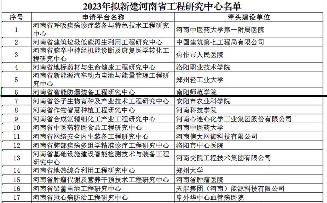 本网讯(通讯员 王军国)近日,河南省发展和改革委员会公示《2023年拟新建河南省工程研究中心》,新葡萄官网机电工程学院申报的“河南省智能防爆装备工程研究中心”成功入选。截至目前,新葡萄官网建有省级以上工程(技术)研究中心等省级平台共33个。
