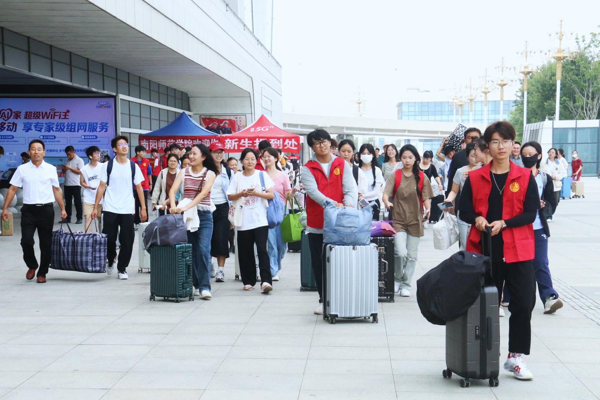 本网讯(杨眉 范立姗/文 杨雨梦 王若寒/图)金秋九月迎新生,志愿服务暖人心。9月9日上午,新葡萄官网迎新志愿服务工作正式启动。校团委组织八十余名学生干部和志愿者奔赴高铁站、火车站、汽车站、飞机场,为新生提供为期两天的接站服务。