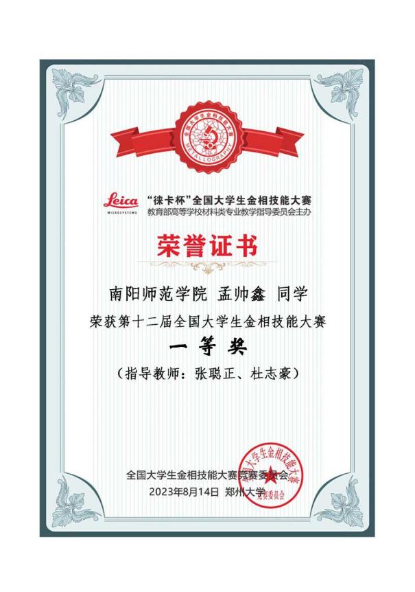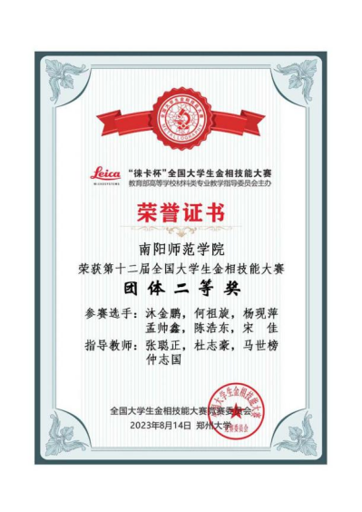 本网讯(通讯员 张聪正 马世榜)近日,由教育部高等学校材料类专业教学指导委员会主办、郑州大学承办的第十二届全国大学生金相技能大赛(决赛)在郑州大学举行。新葡萄8883官网AMG学子荣获国赛个人一等奖1项、二等奖2项、三等奖3项。新葡萄8883官网AMG总成绩名列全国第34名、河南省第3名,荣获团体二等奖。