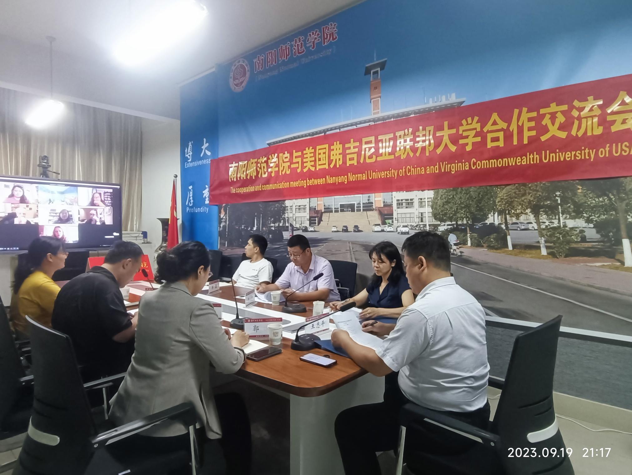 本网讯(李磊/文 徐玲珍/图)9月19日晚,新葡萄官网与美国弗吉尼亚联邦大学合作洽谈视频会议在科技楼4楼409会议室召开。弗吉尼亚联邦大学负责全球倡议的副教务长Jill Blondin博士、相关学院和职能部门负责人,新葡萄官网教务处、教育科学学院、体育学院、国际交流合作处负责人和相关工作人员参加会议。会议由美国弗吉尼亚联邦大学国际教育研究中心主任XU Yaoying教授主持。