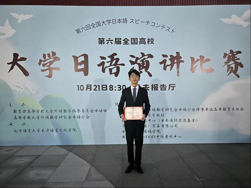 本网讯(通讯员 万人立)10月22日,由中国教育部高等学校大学外语教学指导委员会日语组与高等学校大学外语教学研究会日语分会联合举办的第六届全国高校大学日语演讲比赛决赛在北京语言大学圆满落幕。经过校园赛、初赛以及复赛的层层选拔,新葡萄官网学子张祺瑜不负众望、突出重围,与来自复旦大学、北京师范大学、西安外国语大学等35所高校的优秀选手共同挺进决赛,并荣获了全国二等奖的好成绩。