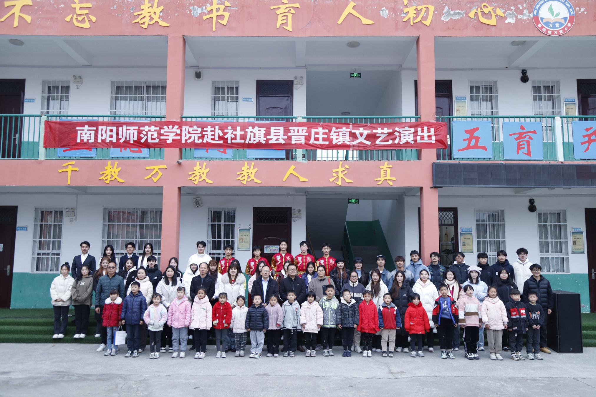 本网讯(杨眉 刘思灼/文 杨雨梦 刘思灼/图)11月10日,校团委负责同志带领大学生艺术团及学院志愿者代表赴社旗县晋庄镇万营小学开展校地帮扶文艺演出。社旗县副县长、晋庄镇党委书记张建洋等当地领导参加。