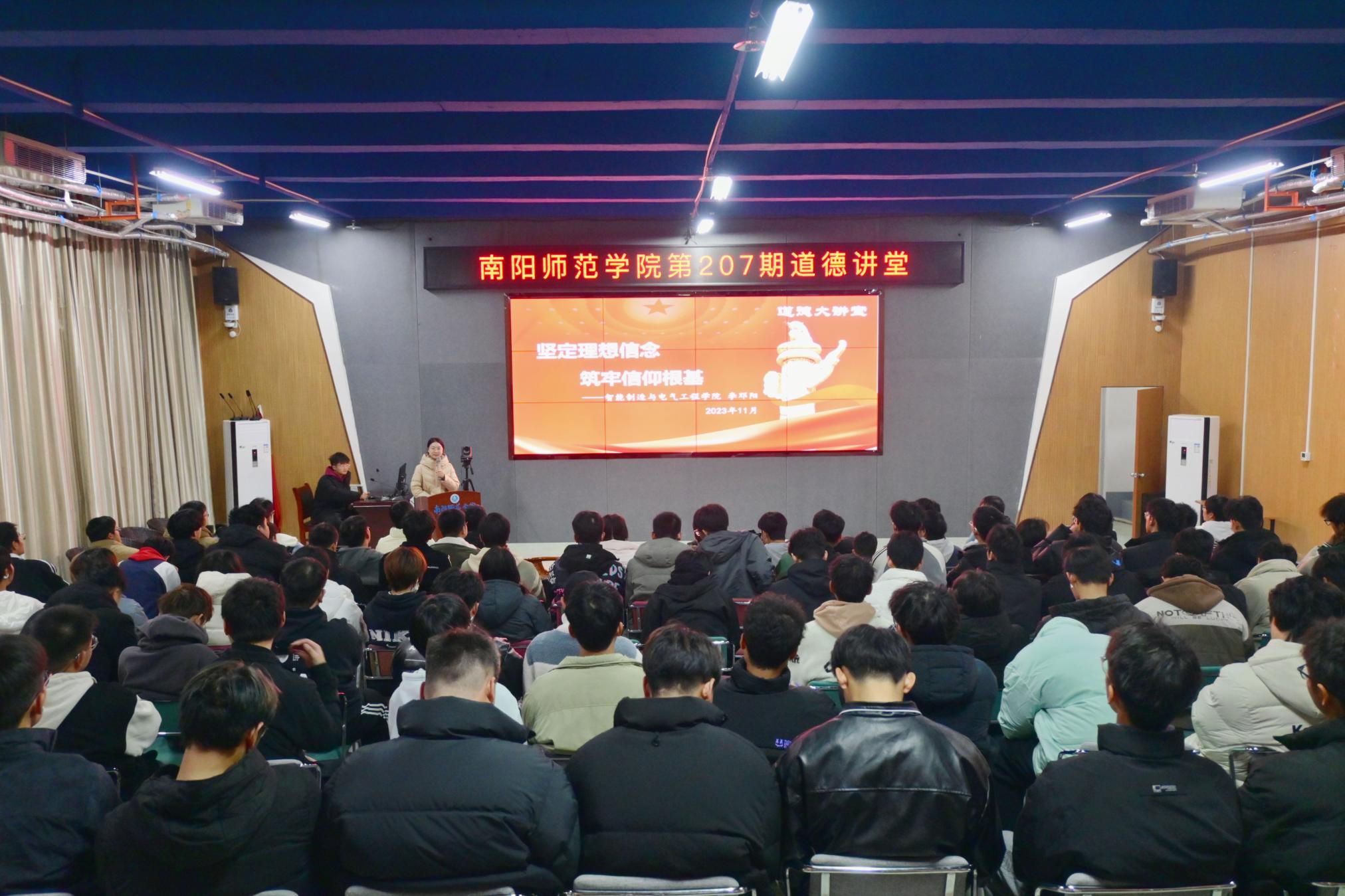 本网讯(徐曼曼/文 郑宇棋/图)11月26日,新葡萄官网以“坚定理想信念筑牢信仰根基”为主题的第207期道德讲堂在实训楼4203举办。本次活动由智能制造与电气工程学院2023级辅导员李邓阳老师担任主讲。该院2023级学生参加。
