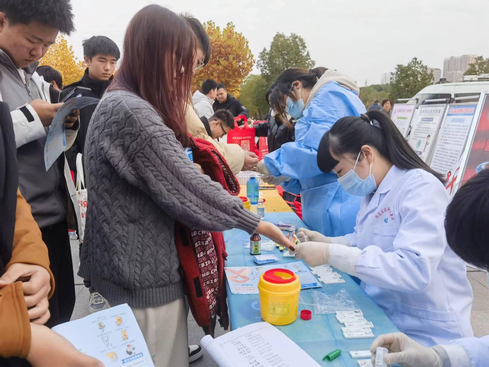 活动现场,疾病预防控制中心工作人员免费为学生们进行快速艾滋病抗体检测;校医院医务人员向学生们发放艾滋病宣传资料,并告知学生新葡萄官网在校医院本部和中区三公寓门诊设置自助式艾滋病自检试剂盒发放机,可进行艾滋病自我检测和判读。