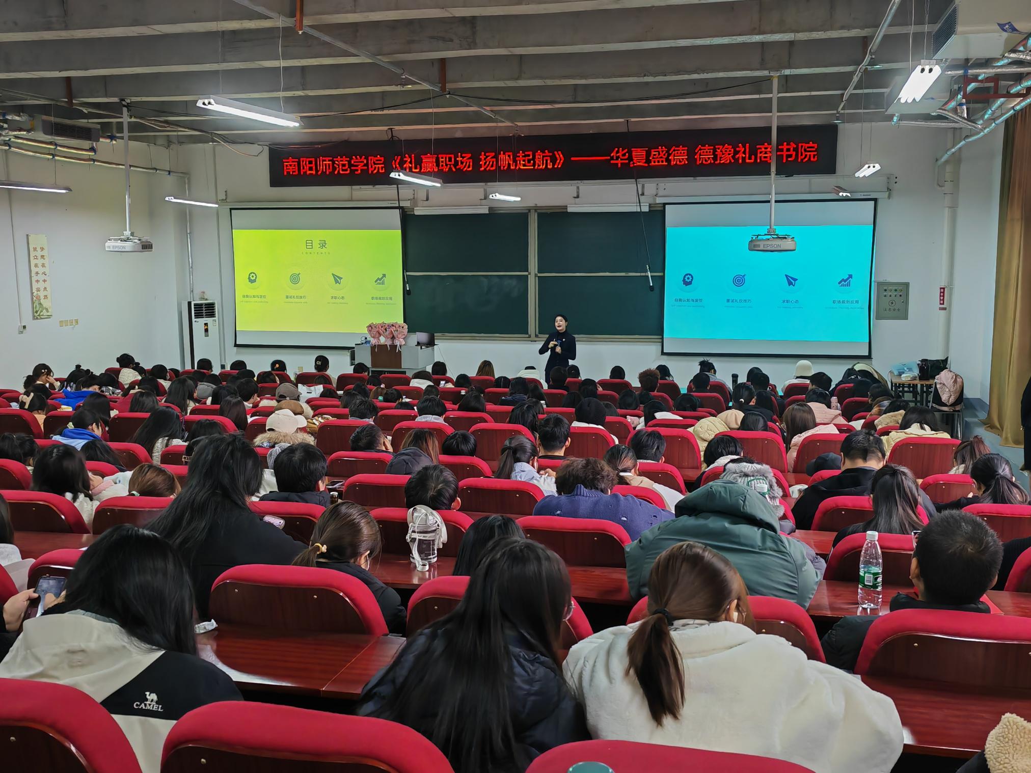 本网讯(通讯员 徐照波)11月29日下午,新葡萄官网2023年第九期就业创业大讲堂在西区实训大楼4201教室举行。本次大讲堂由创新创业学院、就业指导与服务中心主办,教育科学学院、美术与艺术设计学院承办,华夏盛德·德豫礼商学院金牌礼仪培训师彭柯主讲。