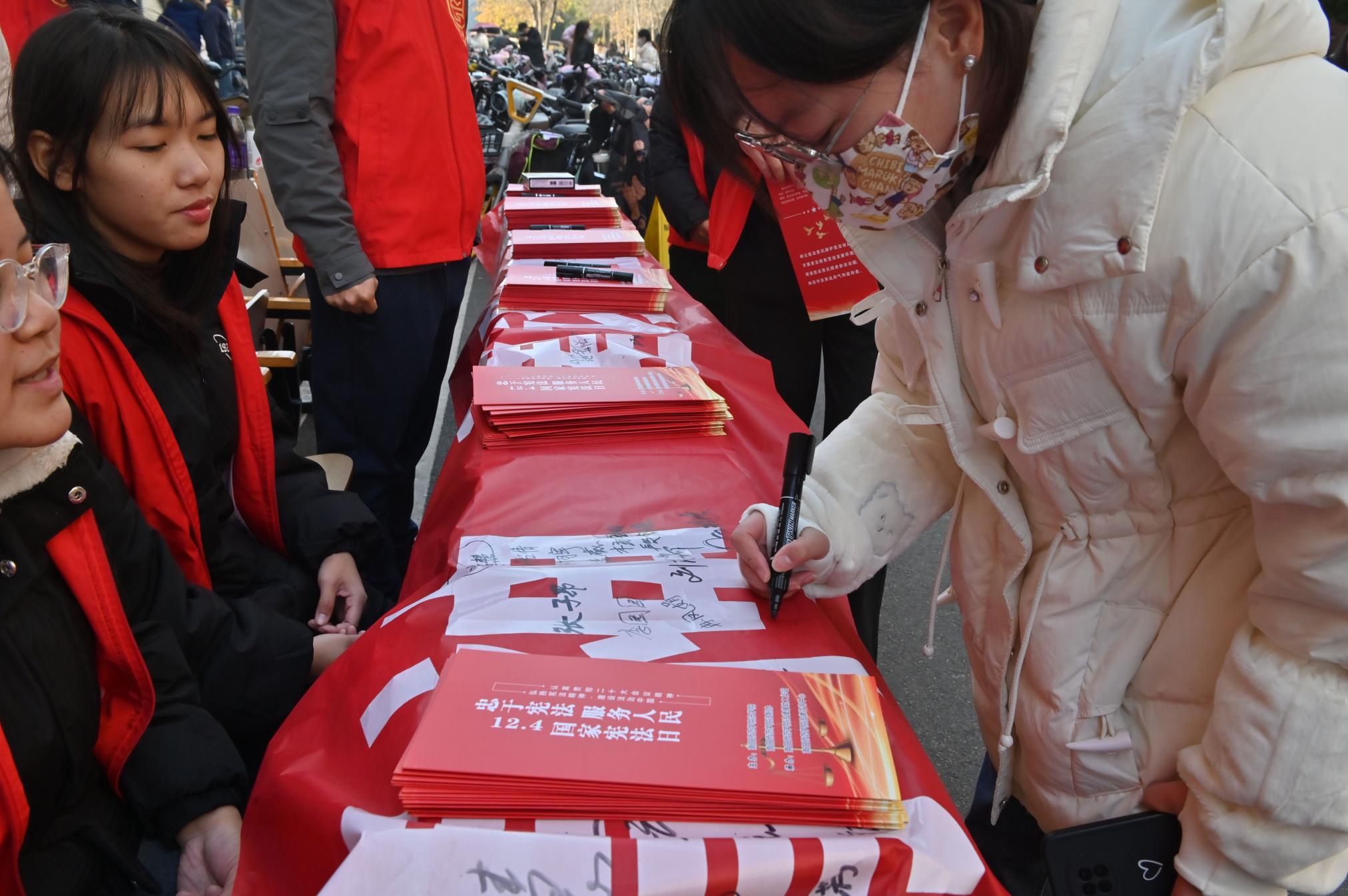 本网讯(张秀芹/文 冯一珺/图)2023年12月4日,在全国第十个国家宪法日到来之际,为认真学习贯彻习近平法治思想,深入贯彻落实党的二十大精神,增强青年学生的法治观念,新葡萄官网法制办、法学院联合举办以“大力弘扬宪法精神,建设社会主义法治文化”为主题的国家宪法日宣传教育系列活动。