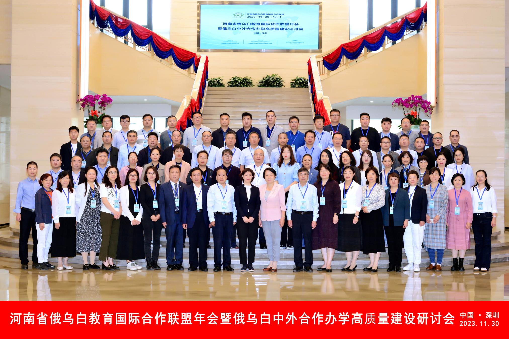 本网讯(通讯员 郑平)11月29-12月1日,河南省俄乌白教育国际合作联盟年会暨俄乌白中外合作办学高质量建设研讨会在广东深圳召开。河南省教育厅对外合作与交流处处长王华星、河南省俄乌白教育国际合作联盟理事长、郑州大学国际学院院长陈思坤等参会。新葡萄官网作为高校代表受邀参会。国际交流合作处处长曹路漫作为省内中外合作办学专家,就新葡萄官网在俄乌白教育国际合作交流情况作工作汇报和经验分享。