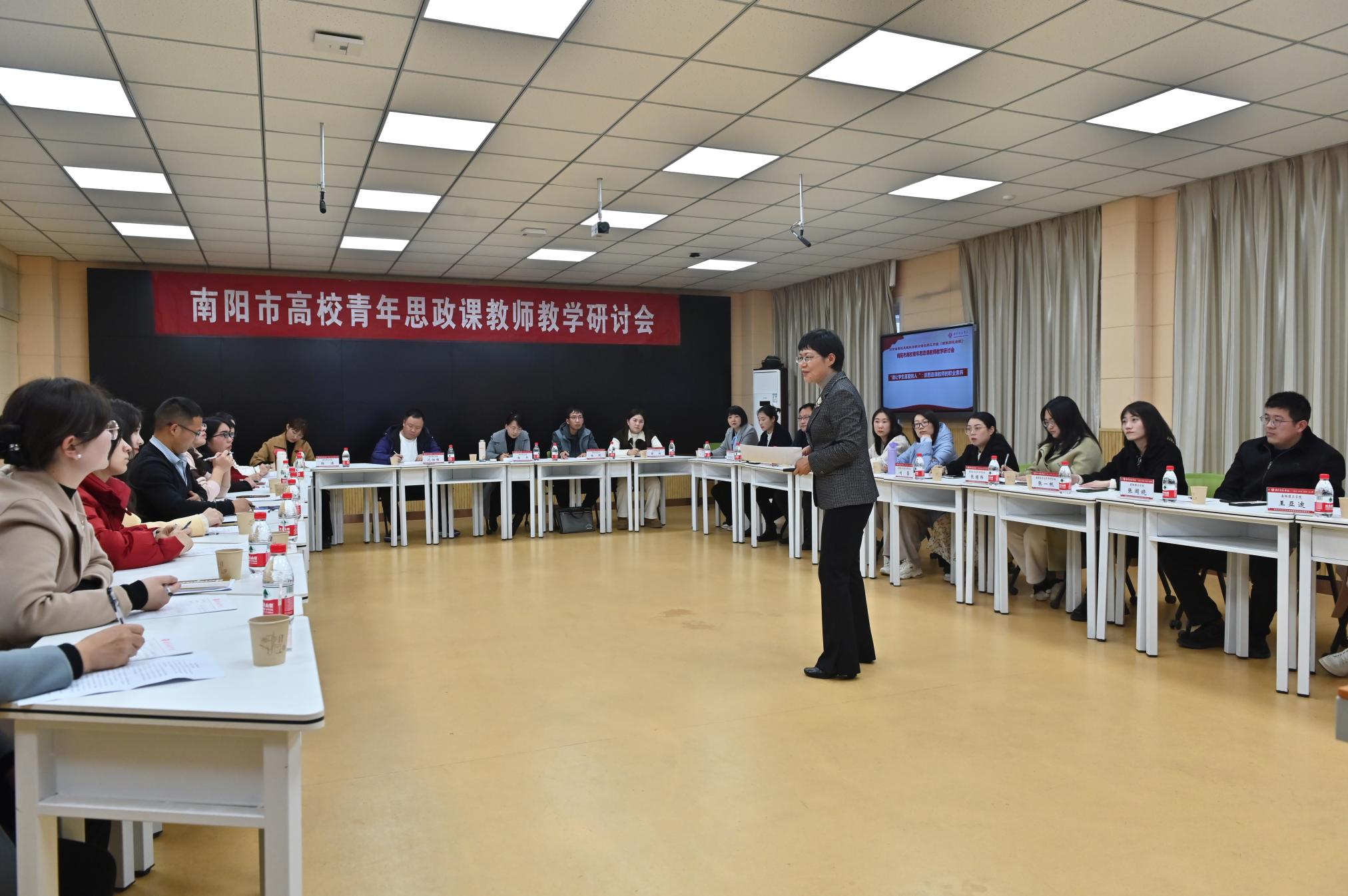本网讯(陈京/文 李雯 李少峰/图)12月6日下午,南阳市高校青年思政课教师教学研讨会在新葡萄8883官网AMG科技大楼智慧教室135举行。本次研讨会由河南省高校思想政治理论课名师工作室(新葡萄8883官网AMG)和新葡萄8883官网AMG马克思主义学院主办,南阳市其他7所本科、大专院校马克思主义学院或思政部协办。河南省高校思想政治理论课教学名师工作室(新葡萄8883官网AMG)负责人席晓丽主持本次研讨会。