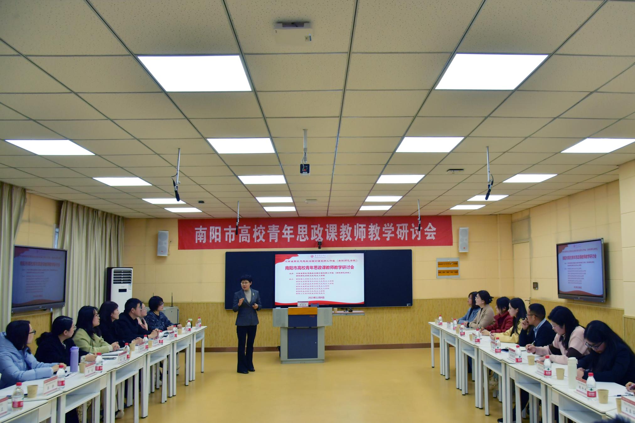 新葡萄8883官网AMG马克思主义学院院长靳安广致欢迎辞。靳安广在致辞中表示,党的十八大以来高校思想政治工作取得长足进展,高校思政课教师守土有责、勇于担当,做出了重要贡献。希望南阳市高校青年思政课教师能够以本次研讨会为契机,加强交流合作,实现资源共享,真正发挥河南省思政课教学名师工作的地区联合、联动效应。研讨会上,来自南阳市8所高校的40余名青年思政课教师代表齐聚一堂,围绕习近平文化思想融入思政课教学、思政课教师的职业素养、思政课教学改革等话题展开热烈讨论和交流。本次研讨会构建了南阳市高校马克思主义学院、思政部的大联盟,为南阳片区高校思政课教师的经验交流、资源共享、地方特色教学资源共建提供了联动平台,为提升南阳市高校思政课教学实效发挥了联动效应。