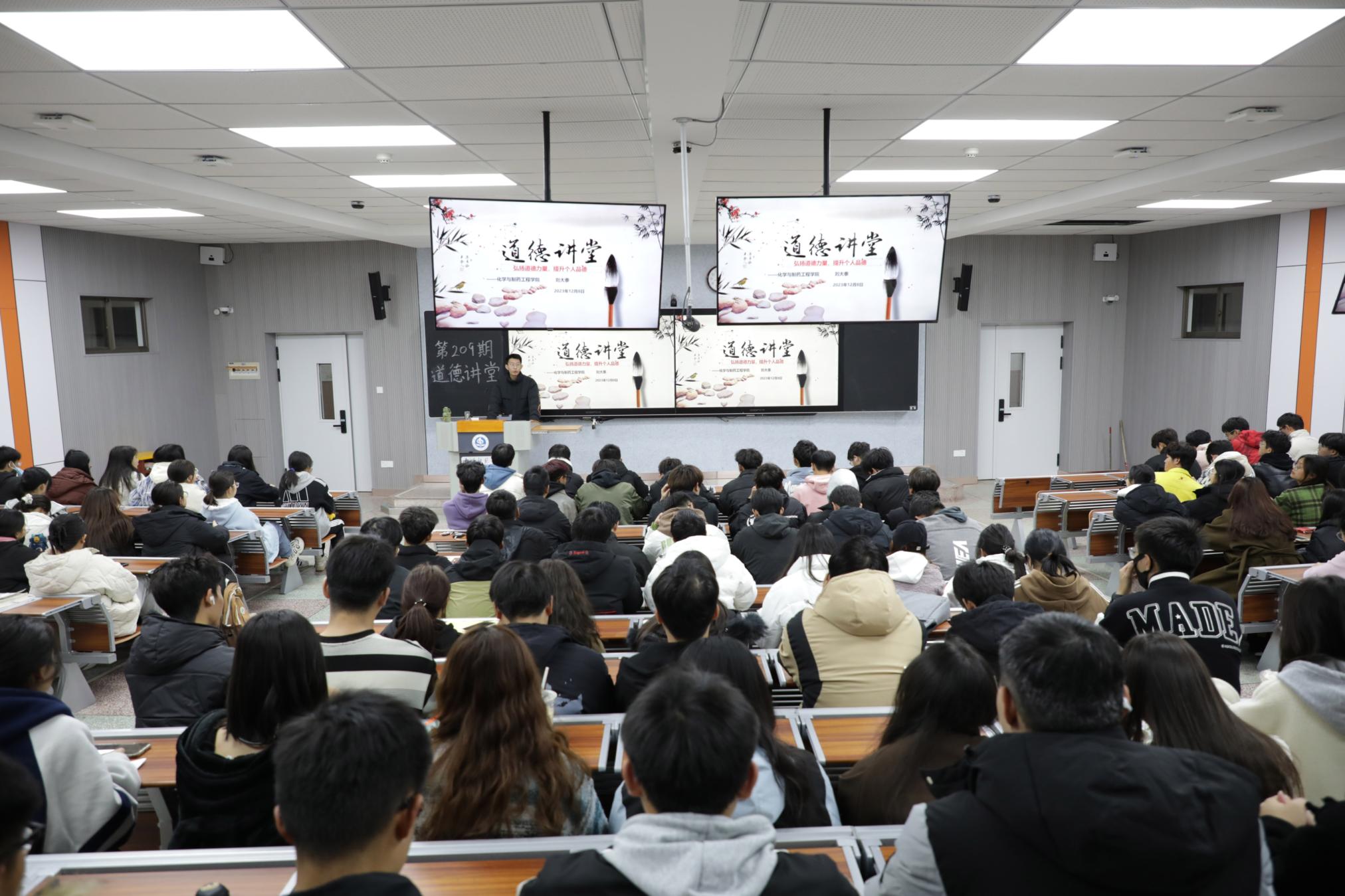 本网讯(徐曼曼/文 刘侗雨/图)12月7日,新葡萄官网以“弘扬道德力量,提升个人品德”为主题的第209期道德讲堂在综合楼102教室举办。本次活动由化学与制药工程学院2023级辅导员刘大泰担任主讲,该学院2023级全体学生参加。